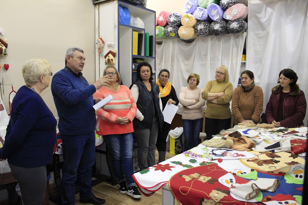 No grupo receptivo ao prefeito, em reunião na sede da Diretoria, na rua Caetano Vieira da Costa, estavam também mulheres responsáveis pela produção dos artigos à venda na loja Armazém das Artes, localizada no Centro, sob supervisão da Diretoria. “Nos bairros temos a intenção de ajudar a formar mulheres empreendedoras, e na loja no Centro oferecemos o trabalho mais amadurecido elaborado pelas artesãs. Temos belos exemplos de mulheres que transpuseram seu poder, além de incrementar a renda de casa montaram seu próprio negócio em local fixo”, comemora a diretora de Inclusão e Cidadania, Rita Muniz.