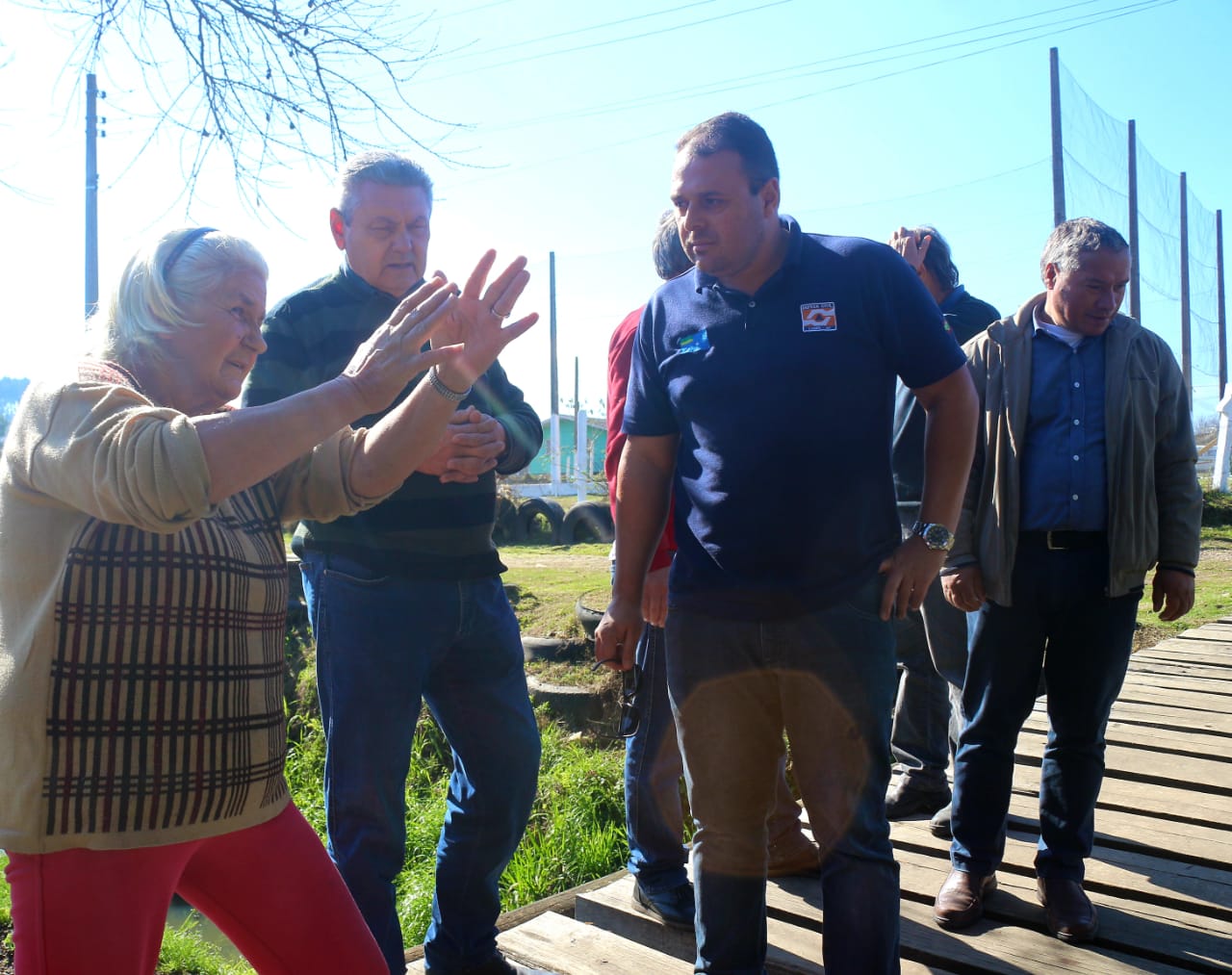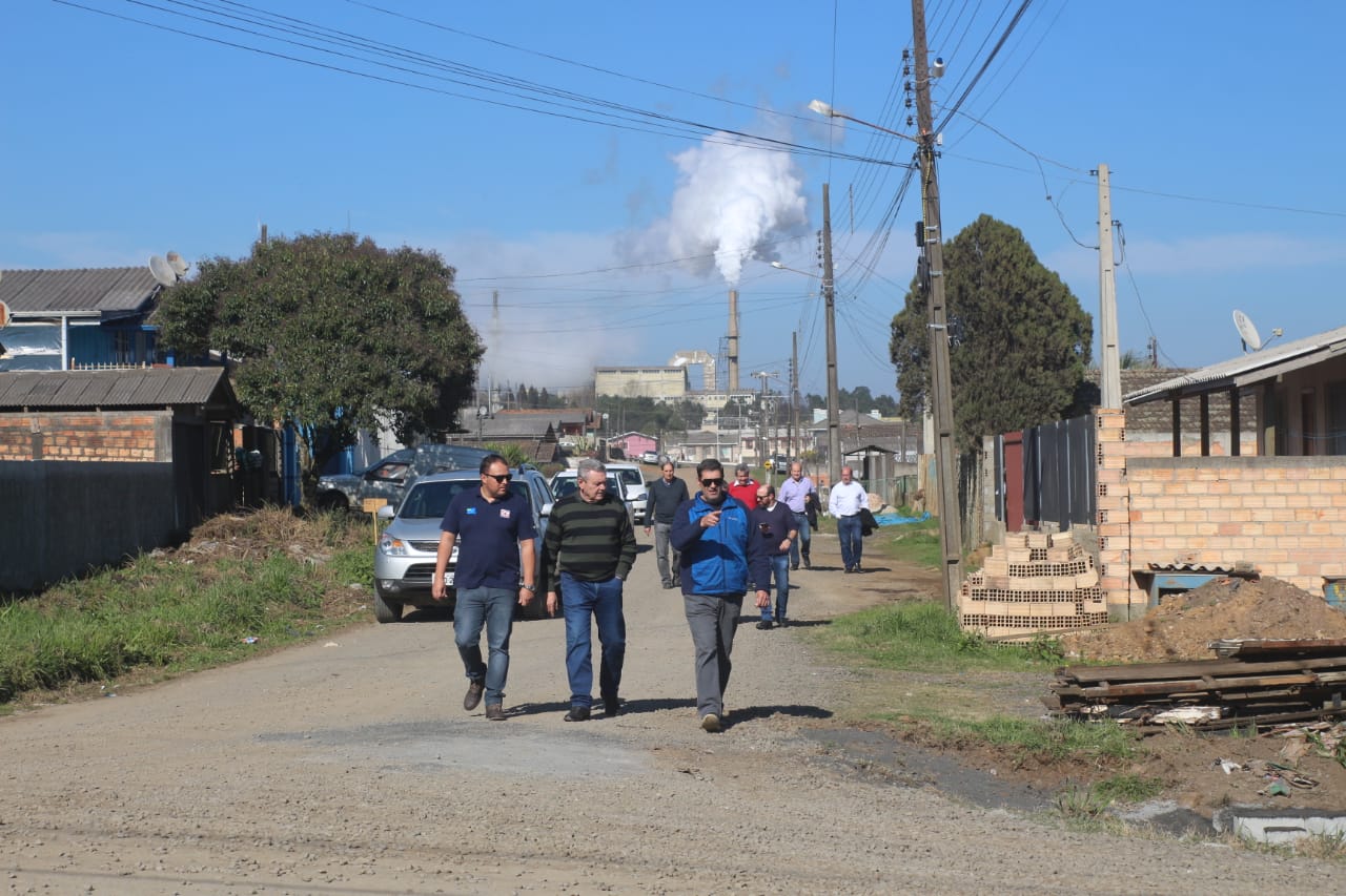 O prefeito percorreu várias ruas do bairro, dentre elas as ruas Grêmio, Flamengo e Fluminense, vias sem pavimentação as quais estão sendo patroladas e revestidas com camada de pedra brita.