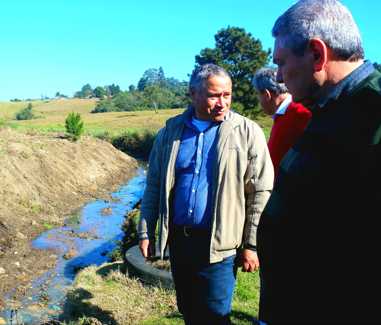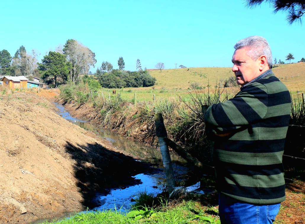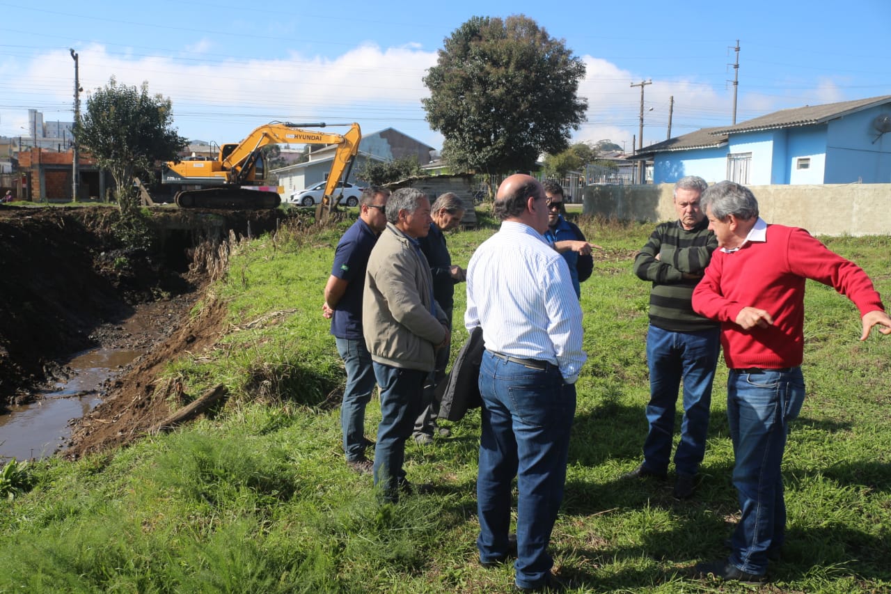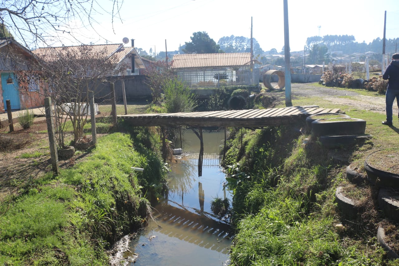 O problema maior, constatado pelo prefeito, está nas margens deste córrego, ocupadas por moradias (área verde). Ceron determinou ao engenheiro Wilson Besen que elabore projeto de construção de muro de arrimo ao longo da extensão já ocupada pelos moradores.