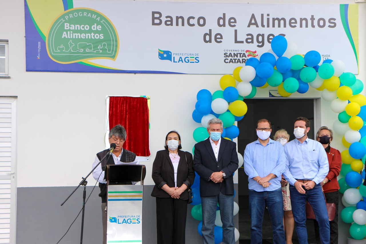 Lages ganhou um novo Banco de Alimentos, totalmente reformado e equipado para atender às necessidades dos lageanos que vivem em situação de insegurança alimentar e ainda fomentar a agricultura familiar. A estrutura foi inaugurada na manhã desta quinta-feira (4 de novembro) pelo prefeito Antonio Ceron, o vice Juliano Polese e o secretário municipal da Assistência Social, Jean Pierre. A solenidade contou com a presença do secretário de Estado do Desenvolvimento Social, Claudinei Marques, vereadores e lideranças comunitárias.