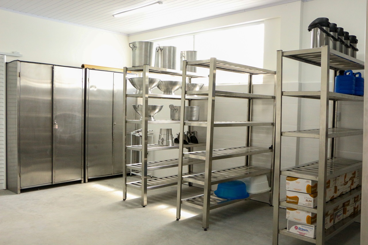 A nova estrutura conta com cozinha, sala administrativa, de serviço social, auditório, sala de triagem e seleção de alimentos, área de descarte, estocagem, duas câmaras frias e banheiros com acessibilidade. Também foram adquiridos equipamentos da linha industrial, como batedeira planetária, secadora a vácuo, liquidificador basculante, centrífuga de sucos, despolpador e balança.