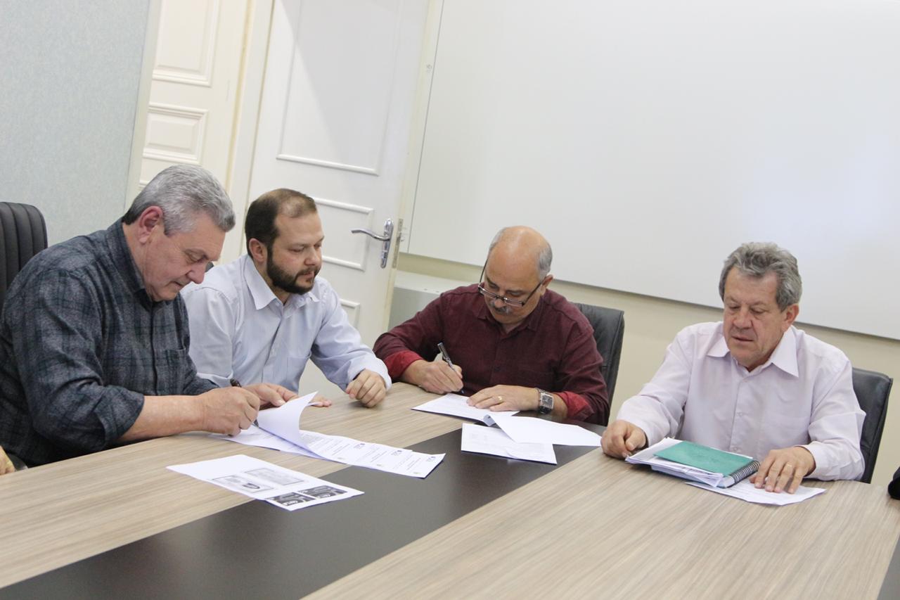 Foi assinado, no gabinete do prefeito Antonio Ceron nesta quinta-feira (1° de agosto), o primeiro Termo de Desapropriação Amigável de parte de um terreno que fica às margens do Complexo Ponte Grande. As desapropriações são necessárias para que as obras de implantação da avenida tenham continuidade. Além deste, outros dez terrenos precisam ser desapropriados. “Preferimos pelo acordo amigável, por ser um processo mais rápido, que pode ficar bem para os dois lados, pensando em uma obra desta grandeza, que vai beneficiar toda a comunidade”, ressalta o prefeito.