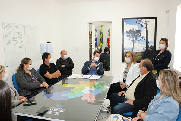 Na manhã desta sexta-feira (12 de novembro) o prefeito Antonio Ceron, juntamente com o vice Juliano Polese, recebeu em seu Gabinete a prefeita Nelci Fátima Trento Bortolini, do município de Água Doce, no meio oeste de Santa Catarina. Ela esteve em Lages acompanhada de membros do seu secretariado como: a secretária de Saúde e Promoção Social, Patrícia de Faria e do secretário de Desenvolvimento Econômico e Turismo, Marino de Souza Pinto. O secretário municipal de Assistência Social e Habitação, Jean Pierre Ezequiel, acompanhou a comitiva de Água Doce nos equipamentos públicos de Lages.