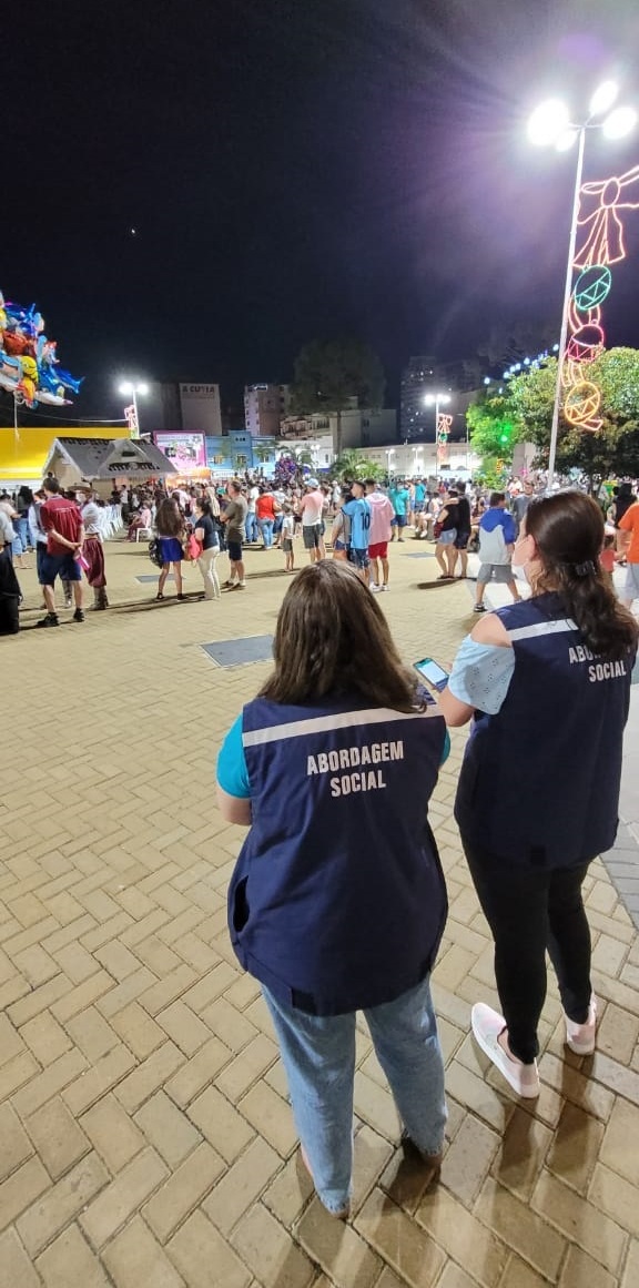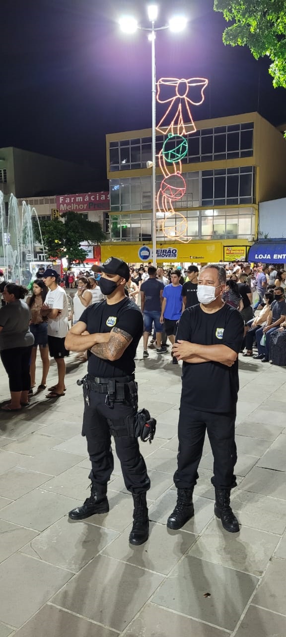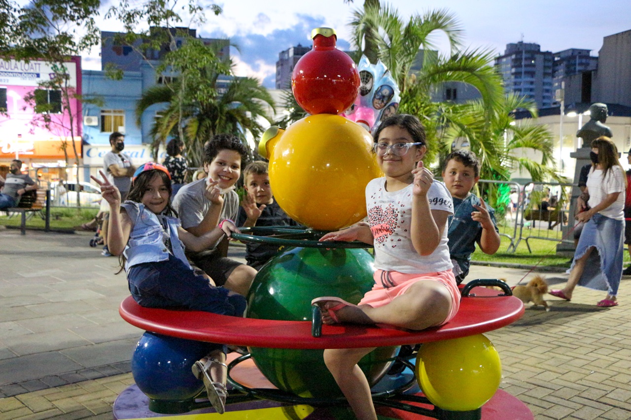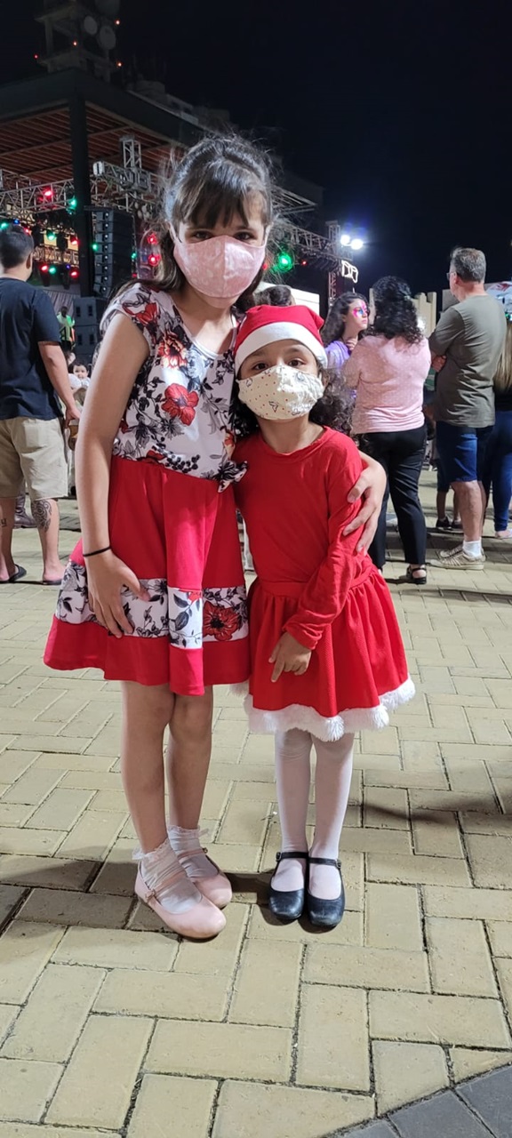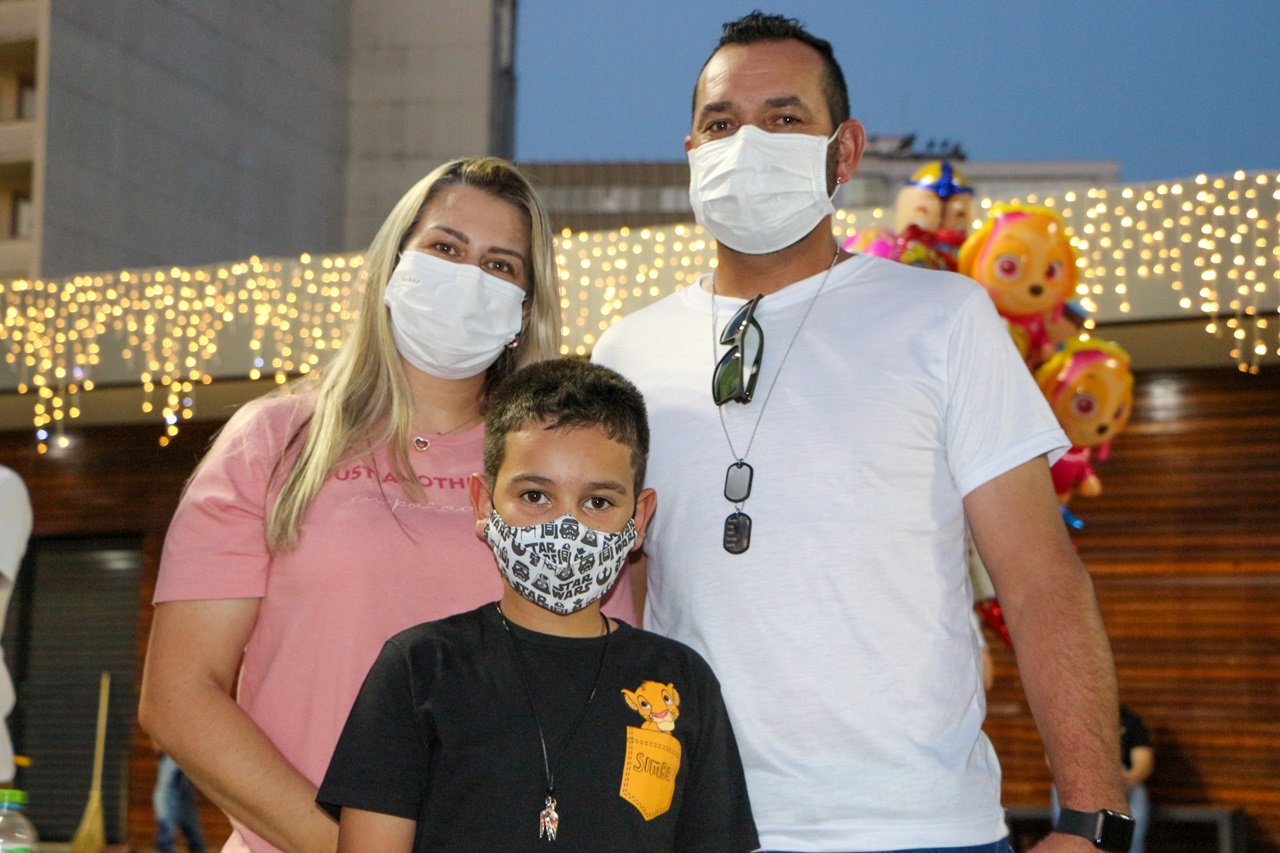 O calor da noite deste domingo (12 de dezembro) e o dia de descanso induziram a Agente Comunitária de Saúde (ACS), Michelle Wolff, e o esposo, o operador de máquinas, Almir Rogério Borba, moradores do bairro Santa Clara, a levarem o filho, Murilo, de oito anos, à Praça João Costa no domingo. “Vamos reservar um dia para as compras, lá pelo dia 20. A gente queria ‘dar uma saída’. Esta é a nossa primeira noite no Natal neste ano. Nós viemos prestigiar o Pedro, amigo do Murilo, aluno da Escola de Artes”, explica Michelle, complementando que, “como profissional de saúde eu sinto um alívio, estamos respirando melhor, como se o fim da pandemia estivesse logo ali. A vida continua”. Uma tia de 76 anos de Michelle faleceu por complicações do novo coronavírus em janeiro de 2021, em Biguaçu. Almir adianta que saíram de casa para ir ao Centro “matar a curiosidade e ver as novidades do Natal. Quase voltando ao normal”.