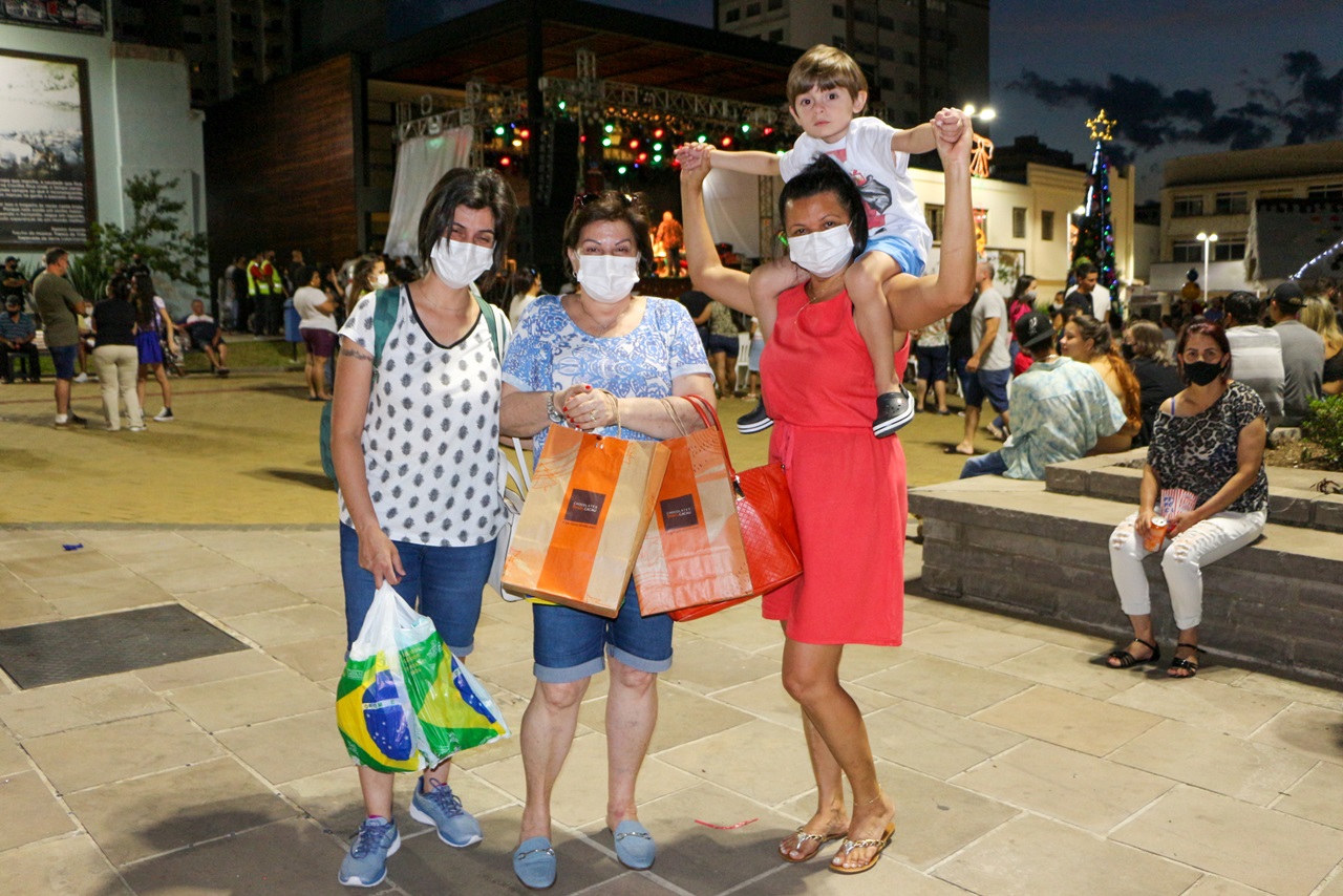 Iris Silva reside no bairro São Cristóvão e foi dia de gastar no comércio. “Eu vim com a minha esposa, Ana Paula; meu filho Enzo, quatro anos, e a minha sogra Márgara. O Natal está bonito e bem iluminado”.
