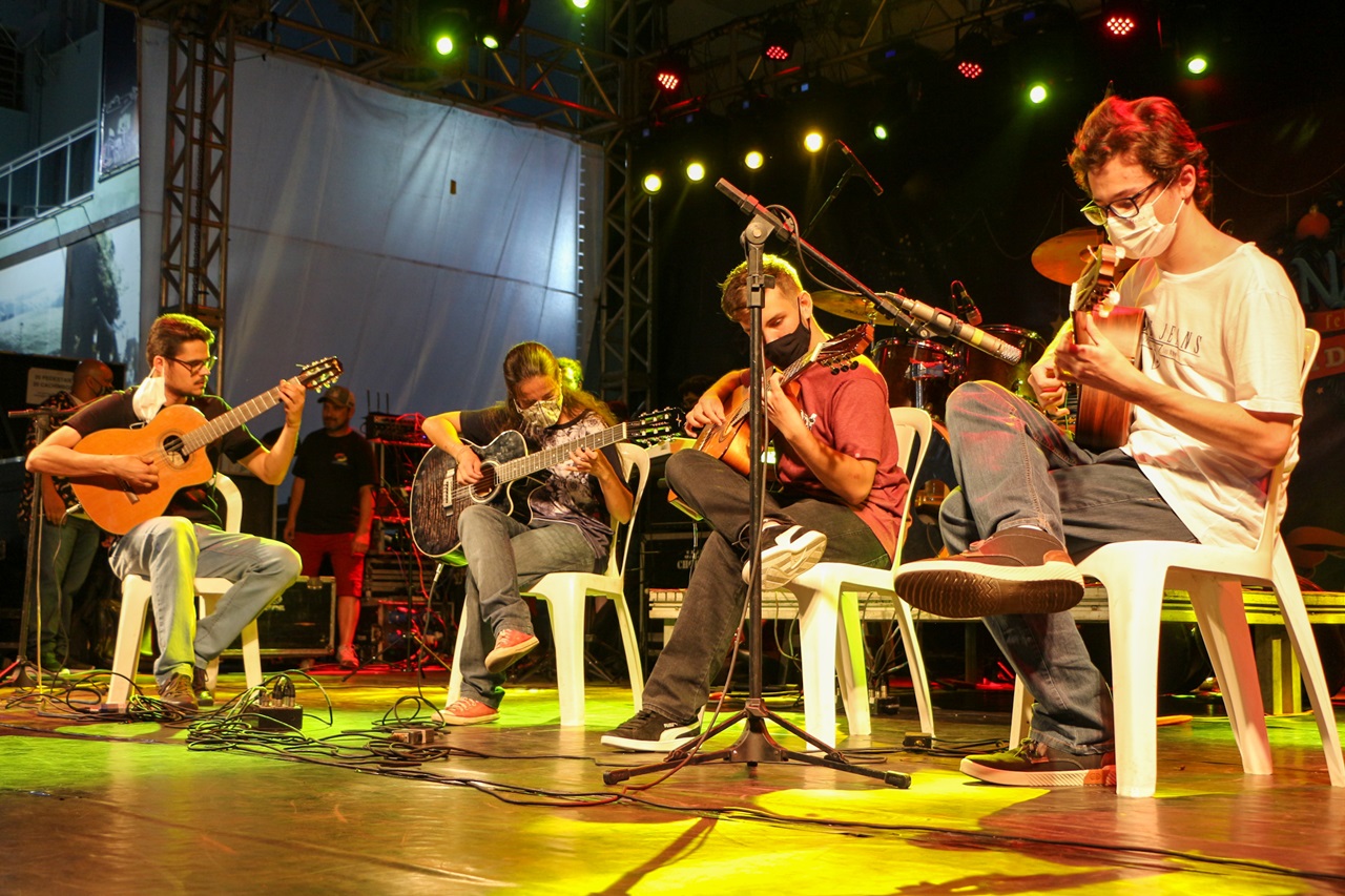 No palco artístico e cultural do Calçadão, ao todo sete números, com alunos de violão, violino, teclado, ukulele, técnica vocal (aulas individuais) e canto e coral (prática de coro - aulas coletivas), nas categorias infantil, juvenil e adulta, com idades variantes entre cinco e superior a 60 anos. E musicalização infantil, com envolvimento de Matheus Colossi, Thiago De Paula e Paulo Guazzelli. Cada professor de sua modalidade mostrou um compacto do trabalho desenvolvido durante este ano, em estilos heterogêneos, como rock nacional e internacional, Música Popular Brasileira (MPB) e folklore. Os alunos do curso de violão apresentaram o tema denominado Relembranças, de autoria de Valdir Verona, conforme esclarece o professor de violão clássico/popular, Rene Ildefonso Senem Steinke dos Santos. Ensaios e músicas já estavam acontecendo desde o segundo semestre, no período das aulas, com as cautelas de prevenção ao novo coronavírus (Covid-19), como uso de máscara facial e de álcool gel nas mãos.