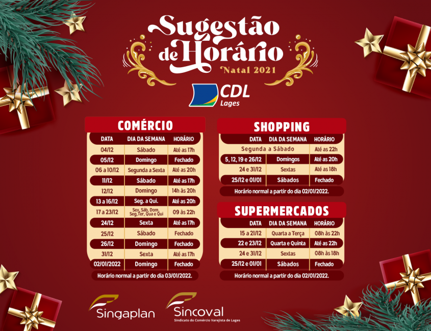 Arte horários comércio, shopping e supermercados: Câmara de Dirigentes Lojistas (CDL)/Divulgação