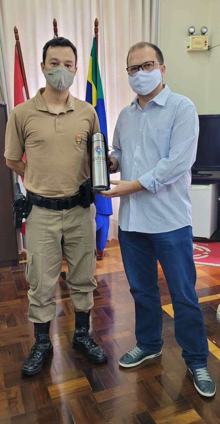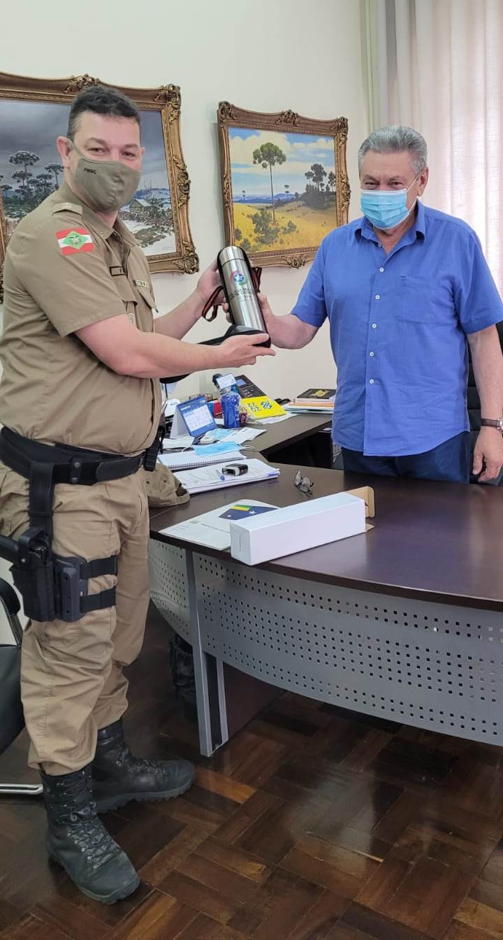 Na manhã desta quinta-feira (16 de dezembro), o prefeito Antonio Ceron; vice Juliano Polese, e o secretário da Administração e Fazenda, Antonio Cesar Arruda, receberam o comando do 6º Batalhão de Polícia Militar (BPM) - comandante, tenente-coronel, Fabiano da Silva, e o subcomandante, major Rodrigo Pedroso, no gabinete do chefe do Poder Executivo, para tratar dois assuntos. Um deles, a oficialização da entrega de artigos comprados com recursos da contribuição voluntária da população de Lages. Itens expostos no Largo da Catedral Diocesana, visualizados pelos habitantes.
