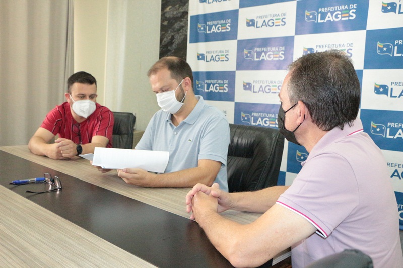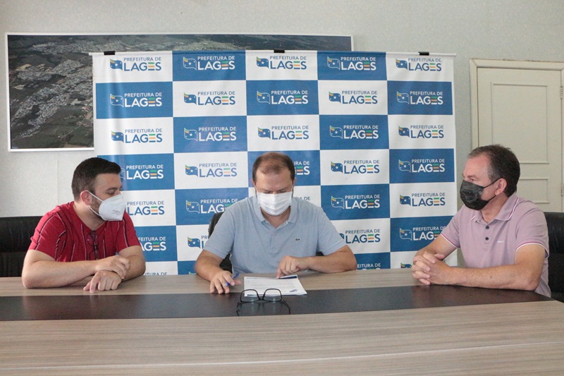 O prefeito em exercício, Juliano Polese, juntamente com o presidente do Instituto Orion Parque Tecnológico, Valmir Marcos Tortelli e o secretário municipal da Saúde, Claiton Camargo de Souza, realizou na manhã dessa sexta-feira (21 de janeiro) em seu Gabinete, o lançamento do Edital nº 01/2022, de Chamada Pública, do primeiro Desafio Conecta Lages para desenvolvimento de solução tecnológica (Plataforma Digital) para sugestão das demandas da comunidade junto à Prefeitura de Lages.