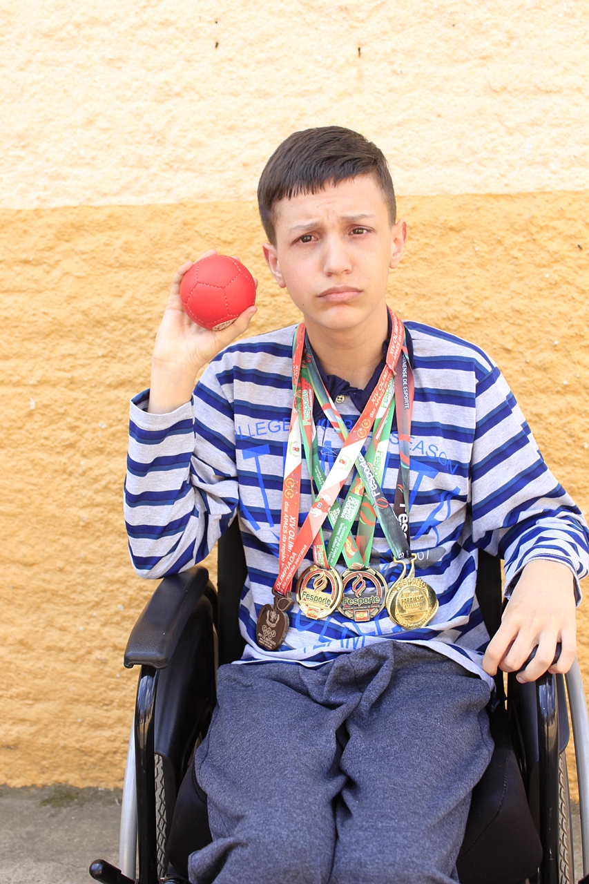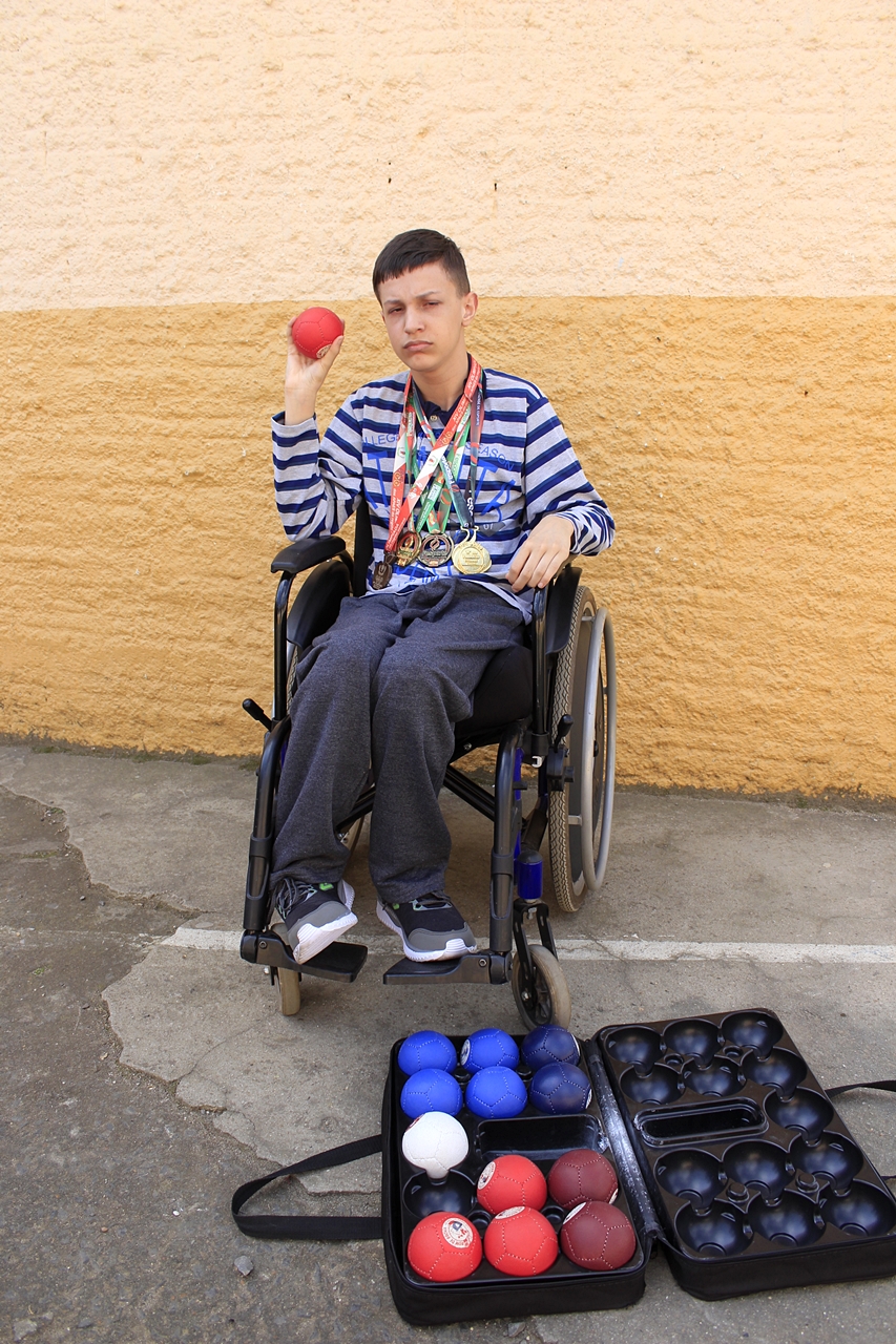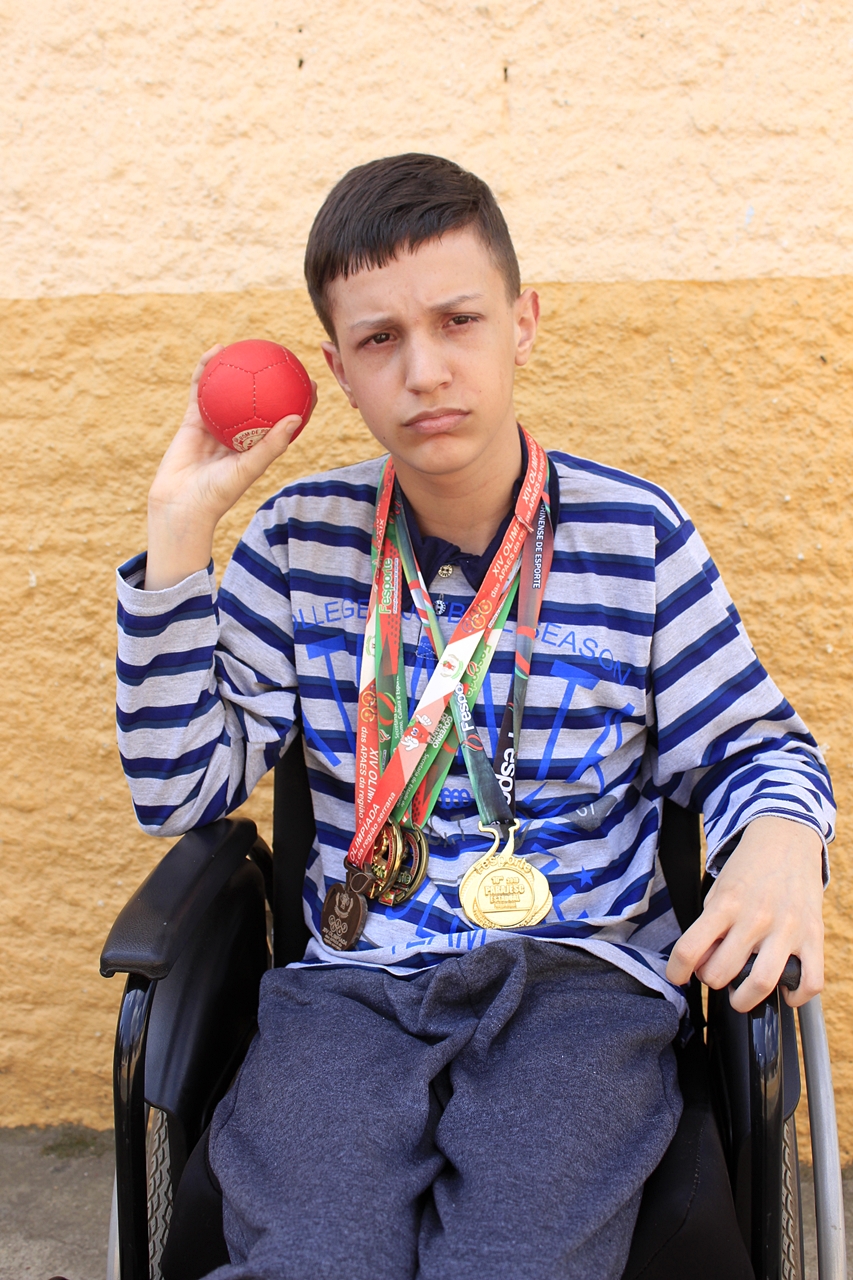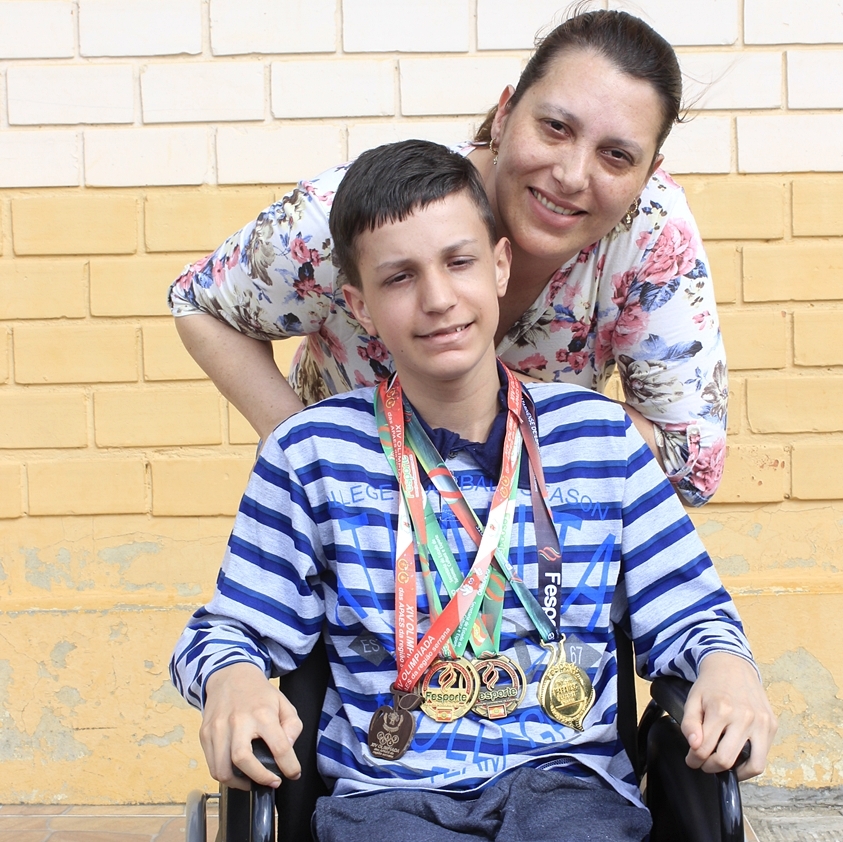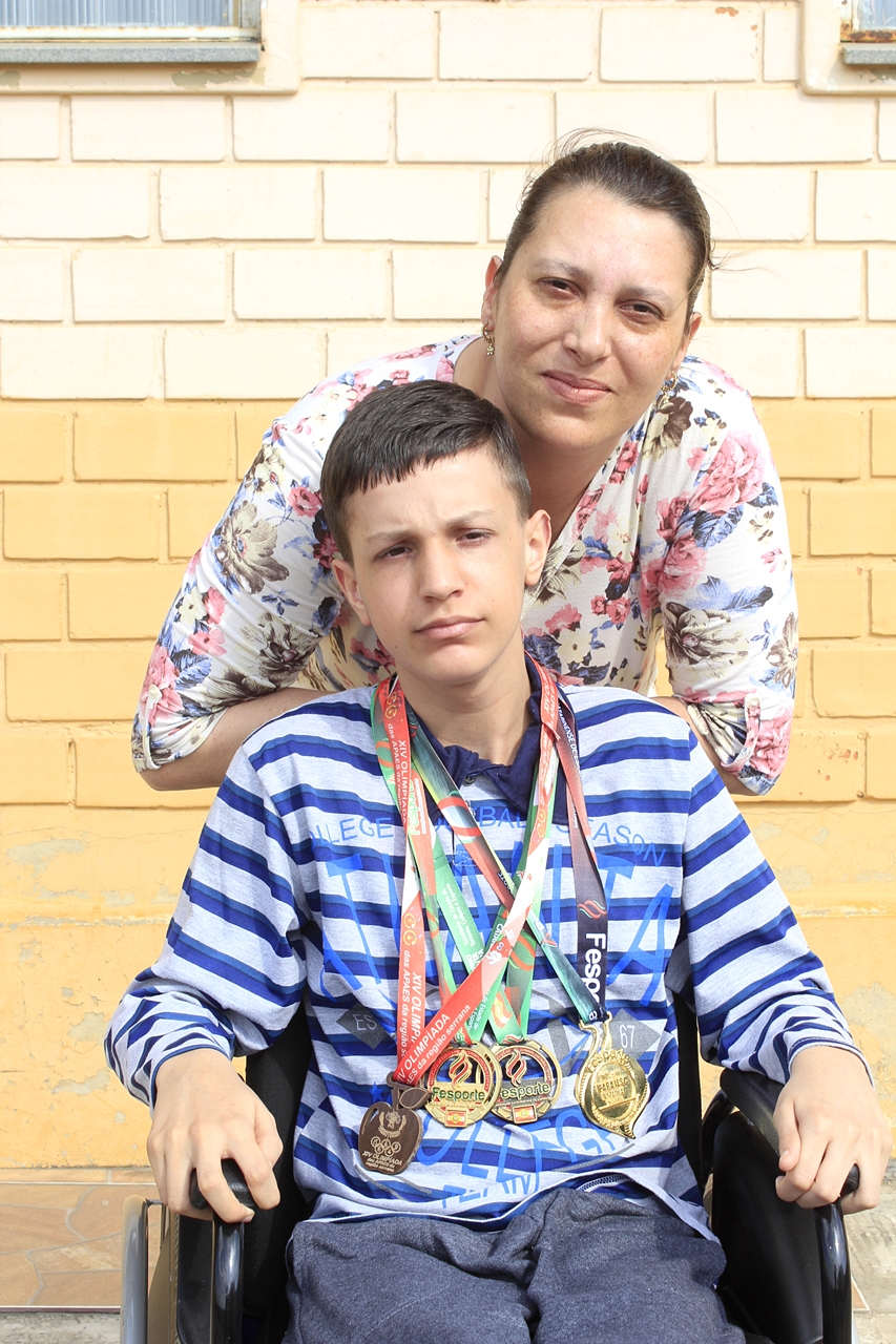 Mesmo com graves limitações físicas, com dificuldades na coordenação motora, na fala e na visão, e dependente de uma cadeira de rodas, Gabriel encontrou no esporte uma motivação