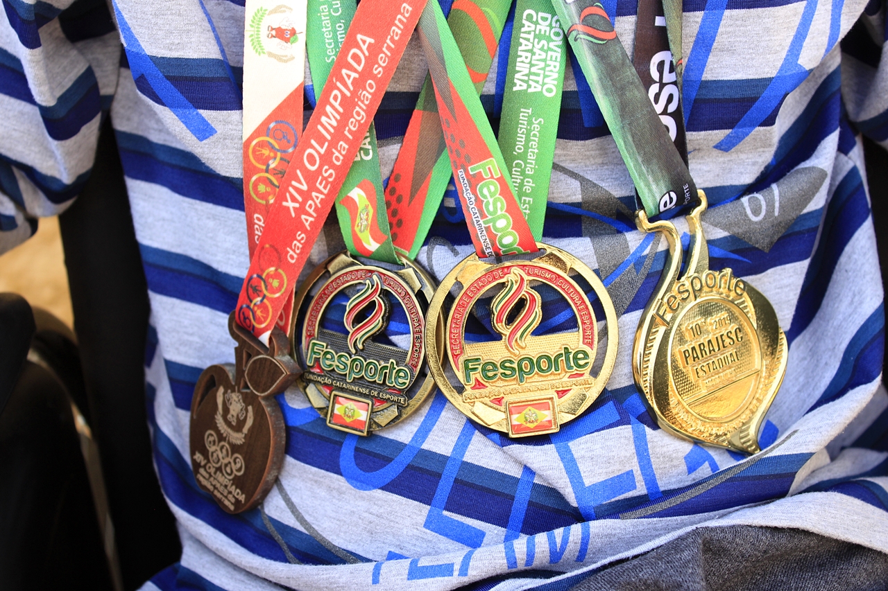 Mesmo com graves limitações físicas, com dificuldades na coordenação motora, na fala e na visão, e dependente de uma cadeira de rodas, Gabriel encontrou no esporte uma motivação. Há dois anos e meio, incentivado pela mãe Simone Bortolozzo, começou a treinar jogo de bocha. Neste período já conquistou quatro medalhas importantes; é bicampeão nos Jogos Escolares Paradesportivos de Santa Catarina (Parajesc), com duas medalhas de ouro em 2018 e em 2019 e um bronze em 2017. Também conquistou medalha na Olimpíada das Apaes, realizada em Blumenau no ano passado.