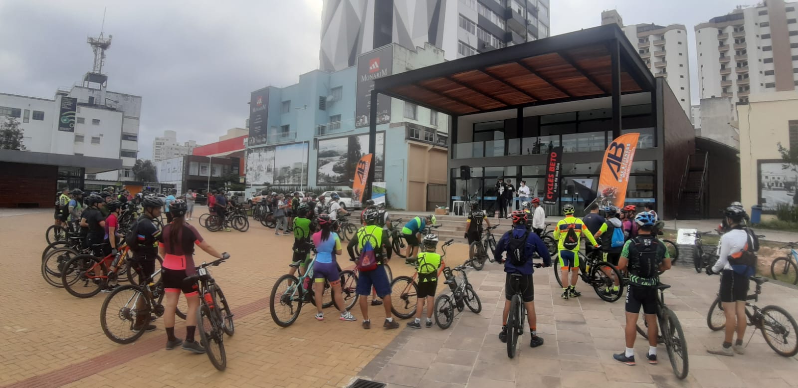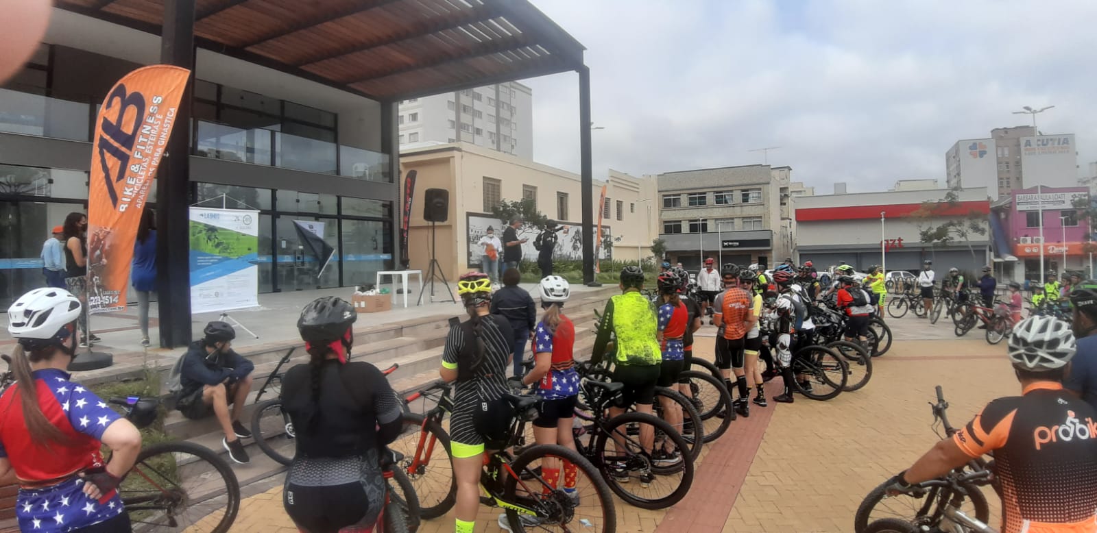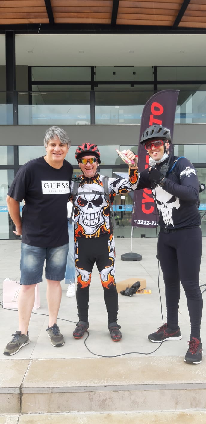 Ainda no calçadão da João Costa aconteceu uma aula para o aquecimento e alongamento dos ciclistas, antes da saída do percurso. Teve sorteio de diversos brindes de lojas de acessórios, suplementos alimentares e roupas esportivas.