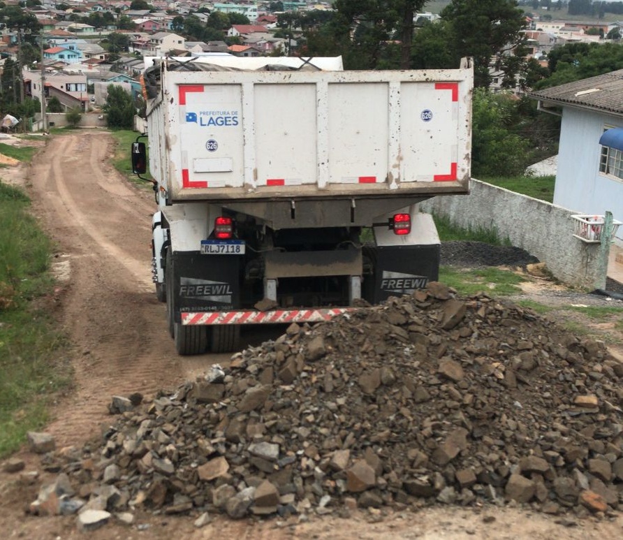 Prefeitura de Lages realiza serviços de patrolamento, cascalhamento, colocação de britas, entre outros, nas vias sem pavimento dos bairros