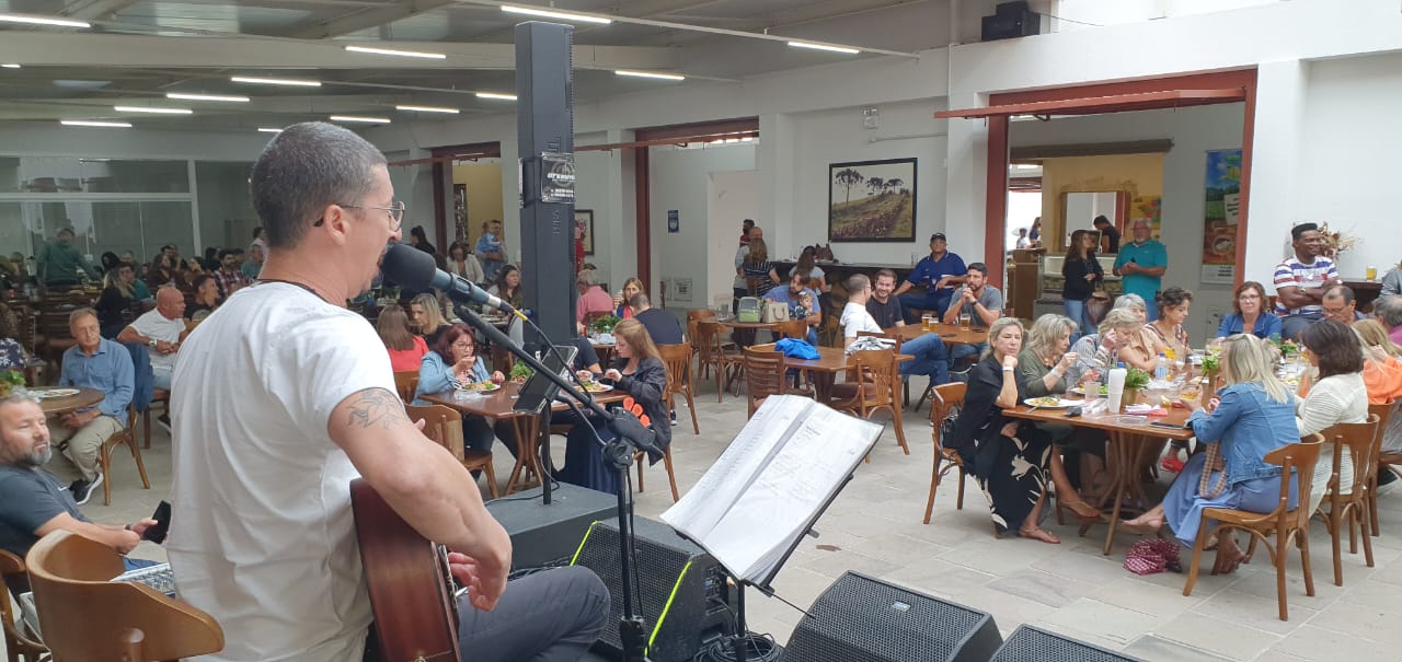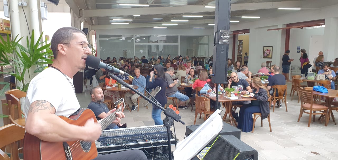 Nem a chuvinha fina com uma temperatura mais amena, característica do período de troca de estação na serra, conseguiu espantar o público do Mercado Público Municipal, nesse sábado (12 de março). As atrações, como o almoço servindo a Quirera Gourmet e as apresentações de musicais com artistas locais atraíram um grande número de pessoas.