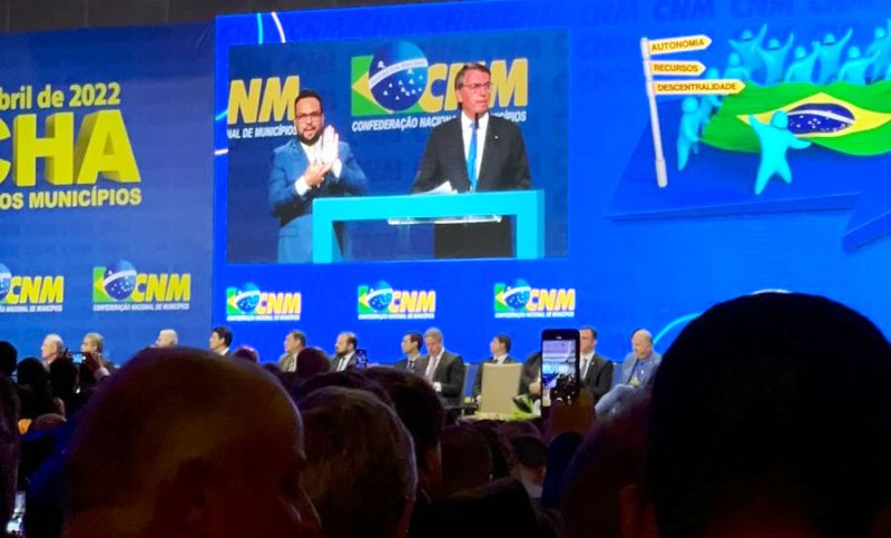 Bolsonaro citou, ainda, um trecho da fala do presidente da Confederação Nacional de Municípios (CNM), Paulo Ziulkoski, que, durante discurso, ressaltou o tratamento que os gestores municipais tiveram em uma das primeiras marchas, quando foram recebidos por cachorros. “Como disse o presidente Paulo [Ziulkoski], no passado, realmente, estou aqui desde 1991 e sei como os senhores eram tratados e como são tratados hoje em dia. Hoje em dia o tratamento é aquele que tem que ser dado e os senhores retribuem isso conosco. À nós o futuro não é apenas do Município, mas do Brasil. Juntos trabalhamos para o futuro do nosso país. Em poucas coisas divergimos, mas como um todo o Brasil vai indo bem”, complementou.