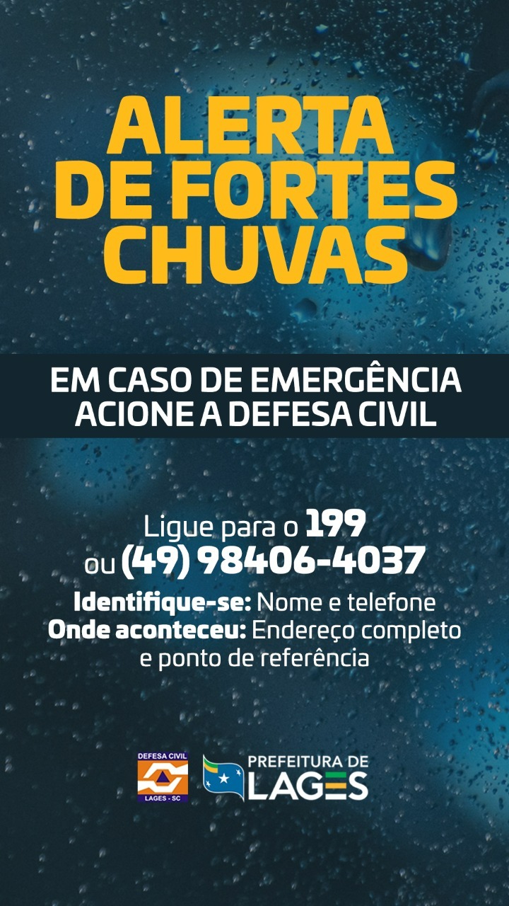 Qualquer emergência devido às chuvas e temporais a comunidade pode entrar em contato direto com a Defesa Civil Municipal nos telefones: 9 8406 4037 ou 199