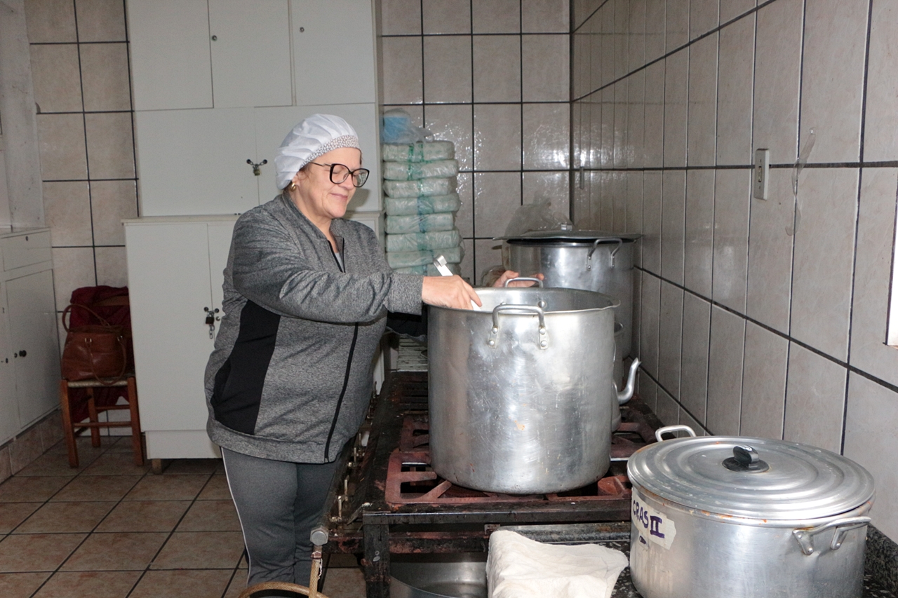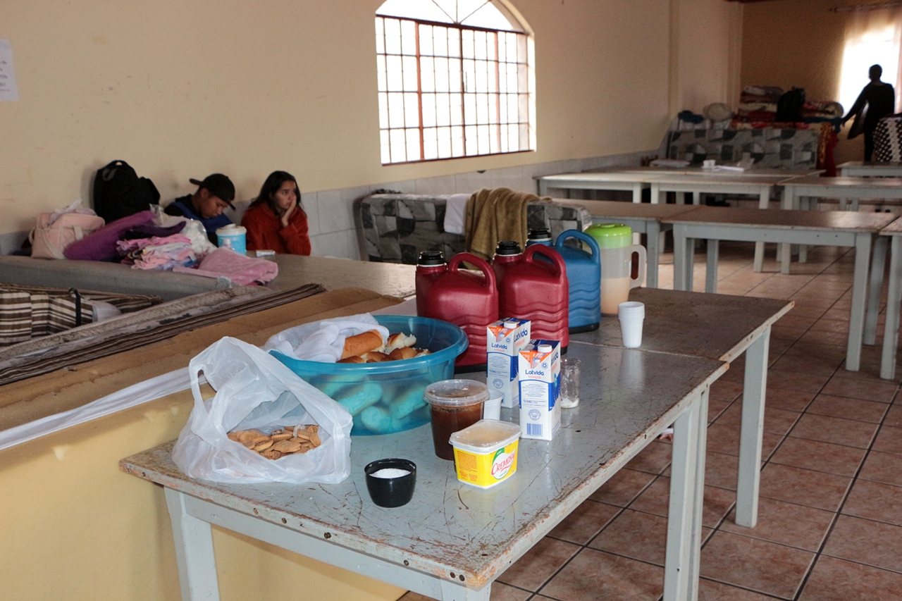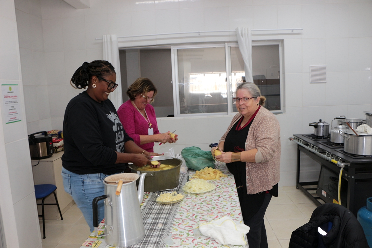 Os insumos para a alimentação também vêm, em sua maioria, do setor de Alta Complexidade. O Banco de Alimentos da Prefeitura contribui com os alimentos perecíveis, como batata e legumes para fazer sopas. A padaria da Secretaria da Assistência Social fornece pães, bolachas, sucos, leite e café para os lanches da manhã e da tarde. Durante a estadia no abrigo, as famílias contam com quatro refeições: café da manhã, almoço, café da tarde e o jantar. Lanches e frutas estão sempre à disposição para quem quiser se alimentar, em qualquer horário. “O jantar ontem foi uma macarronada a bolonhesa e salada de rúcula. Nossas cozinheiras capricham para fazer uma refeição saborosa e eles se sintam realmente acolhidos”, comenta a diretora.