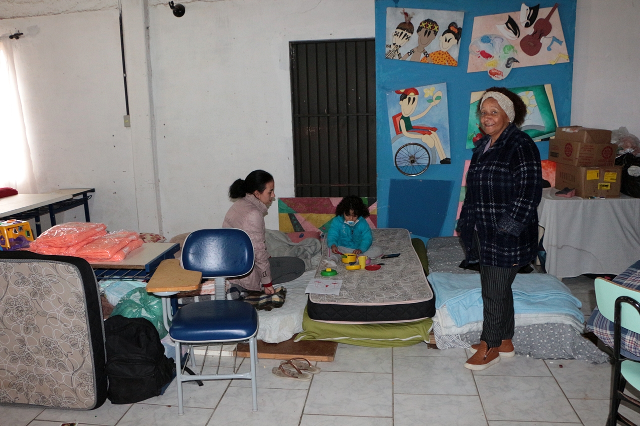 Valdecir Velasques Ferreira, morador da Avenida das Bracatingas, no bairro Habitação, está com a família no abrigo da Associação de Moradores; o filho, a nora e dois netos, de seis e oito anos. “Agradecemos todo o apoio que temos recebido, sem este abrigo não teríamos para onde ir. Agora é voltar para casa e recomeçar”, diz.
