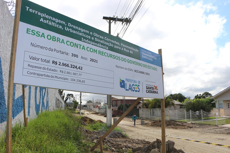 Na rua Independência serão asfaltados 845,20 metros. Pista com oito metros de largura, drenagem e preparação de infraestrutura para construção de passeios (calçadas) pelos moradores (colocação de meio fio e base de brita compactada).