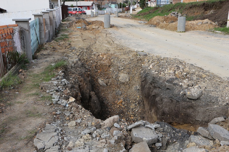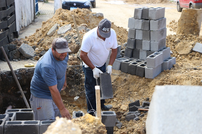 Obras estruturantes de drenagem e esgoto sanitário, antes do asfaltamento, são realizadas na rua Independência e avenida 31 de Março