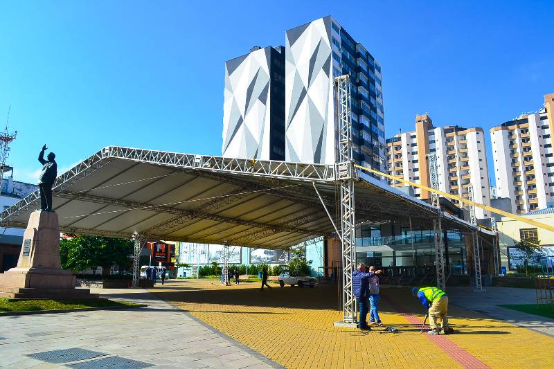 A montagem da estrutura do Recanto do Pinhão Aracy Paim está à todo vapor!