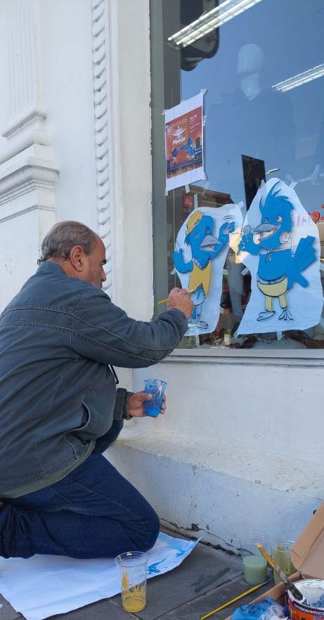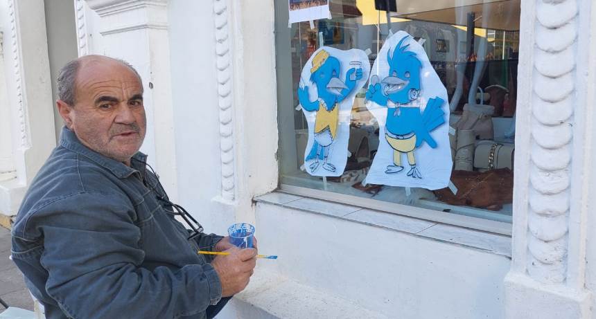 Era pouco antes do meio dia da semana que antecede a abertura da 32ª Festa Nacional do Pinhão, quando o artista plástico Lindomar Borges estava iniciando a pintura da vitrine de uma loja na Rua Nereu Ramos, em Lages