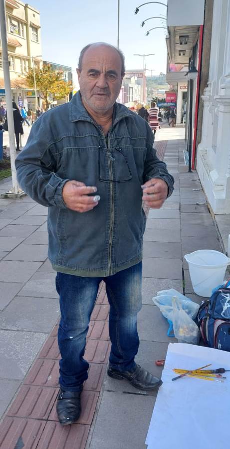 Mesmo assim não desgruda dos pincéis e tintas, e atendendo convite dos proprietários de uma loja de calçados, passou o dia modelando o casal de Gralhas, em sua nova roupagem, mas com o mesmo intuito, ou seja, mostrar ao Brasil e ao mundo a Festa do Pinhão, evento que tanto orgulha os lageanos.