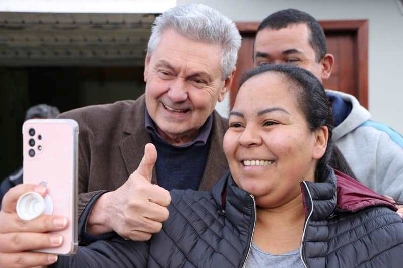 Dentro das andanças nos bairros da cidade, dentro da rotina de entregar ordens de serviço para pavimentação de ruas, o prefeito Ceron não se surpreende com o carinho dos moradores.
