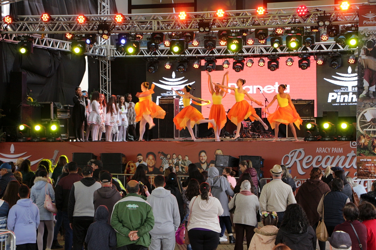 Apresentação de dança dos alunos da Escola de Artes Elionir Camargo Martins, da Prefeitura de Lages, encanta público do Recanto do Pinhão Aracy Paim