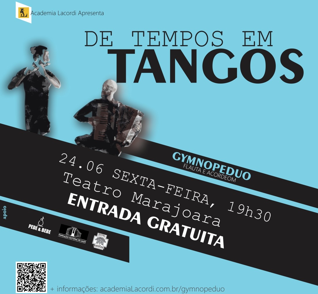No dia 24 de junho, sexta-feira, às 19h30, a Academia Lacorde oferece a dupla lageana de flauta e acordeon, Gymnopeduo, que apresenta o espetáculo musical “De Tempos em Tangos”. A entrada é gratuita e mais informações podem ser obtidas pelo instagram do duo pelo @gymnopeduo.