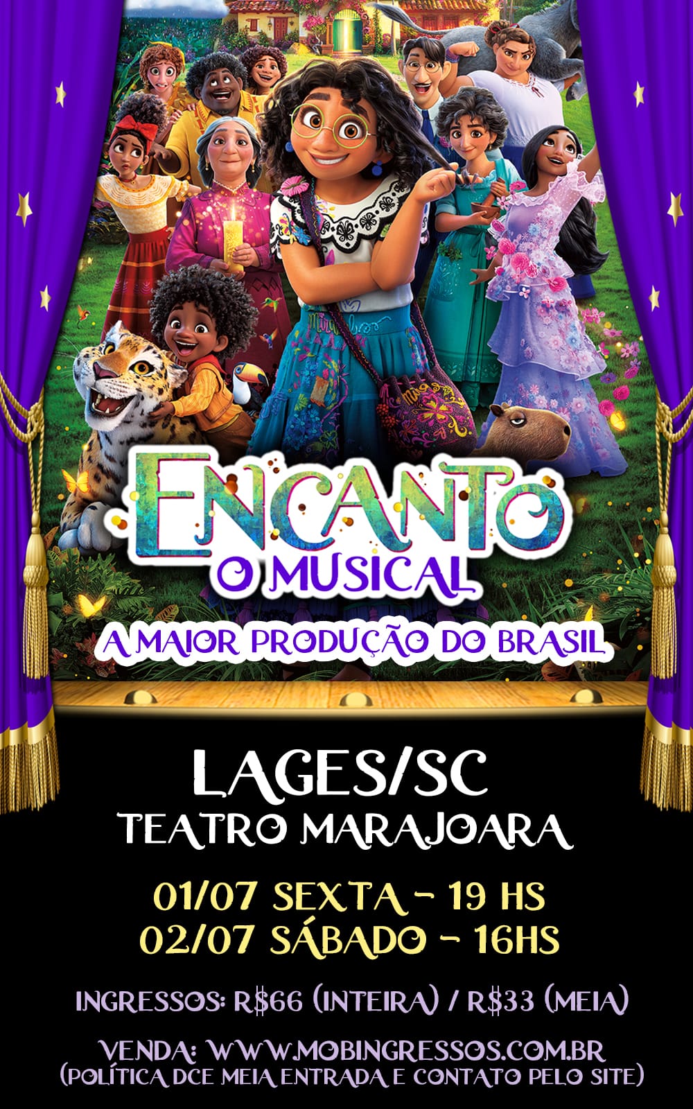 Iniciando o mês de julho, nos dias 1 e 2, “Encanto, O Musical” conta a história dos Madrigal, uma família extraordinária que vive escondida nas montanhas da Colômbia, em uma casa mágica, em uma cidade vibrante, em um lugar maravilhoso conhecido como um Encanto. A magia deste Encanto abençoou todos os meninos e meninas da família com um dom único, desde a superforça até o poder de curar. Todos, exceto Mirabel. Mas, quando ela descobre que a magia que cerca o Encanto está em perigo, Mirabel decide que ela, a única Madrigal sem poderes mágicos, pode ser a última esperança de sua família excepcional.