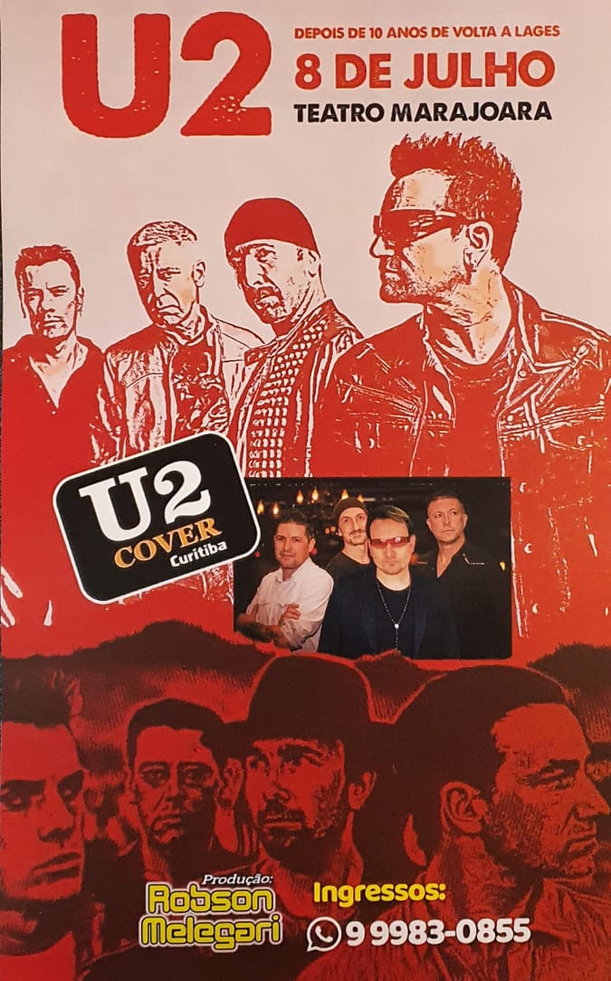 A noite de sexta-feira, 8 de julho, será a vez do público ouvir canções marcantes do rock com a banda U2 Cover, grupo formado na cidade de Curitiba. O show promete um set list com clássicos como One, Pride, I Still Haven't Found What I'm Looking For e outros sons que marcam as trilhas sonoras de fãs de Bono Vox, The Edge, Adam Clayton e Larry Mullen Jr.