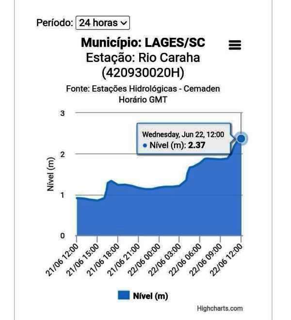 Também está sendo feito o acompanhamento do volume do Rio Carahá, sendo que na medição da manhã desta quarta-feira (22), feito às 8h, apontava 2,37m acima do nível normal.