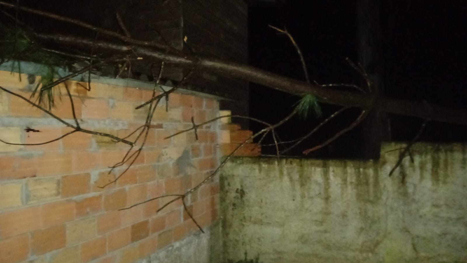Técnicos da Defesa Civil se deslocaram até o Bairro Bom Jesus, Rua Bartolomeu de Gusmão, na noite de terça-feira, onde uma árvore havia caído sobre o telhado e muro de duas residências, onde foi constatado ser um pinus de pequeno porte.