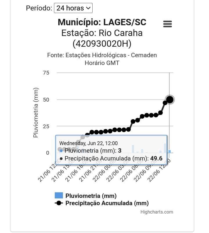 Quanto a precipitação pluviométrica na cidade, a medição feita pela Defesa Civil apontou a marca de 49.6mm nas últimas 24h.