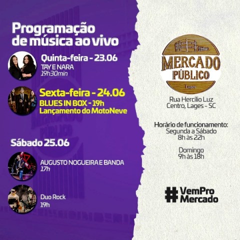 O Mercado Público Municipal de Lages continua com sua programação musical de fim de tarde nos finais de semana, a partir das quartas-feiras.