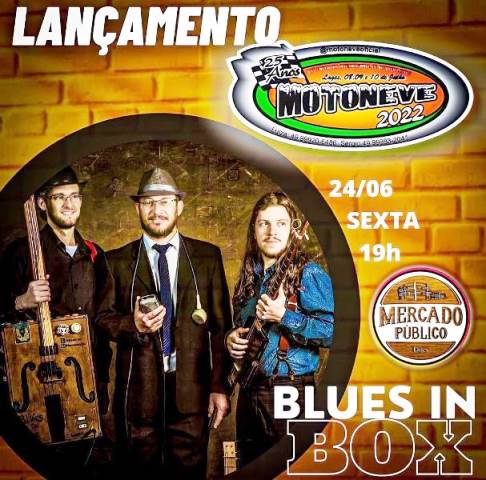 Blues tem tudo a ver com motocicletas, pois até parece que foram feitos um para o outro, pelo estilo de vida e a maneira de ser. Então, nada melhor que um grande show com a banda Blues in Box nesta sexta-feira, a partir das 19h30min, no Mercado Público, para o lançamento do Motoneve 2022.