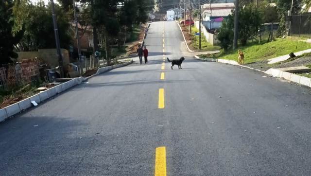 Asfalto chegando no trecho faltante da Carahá, no Caça