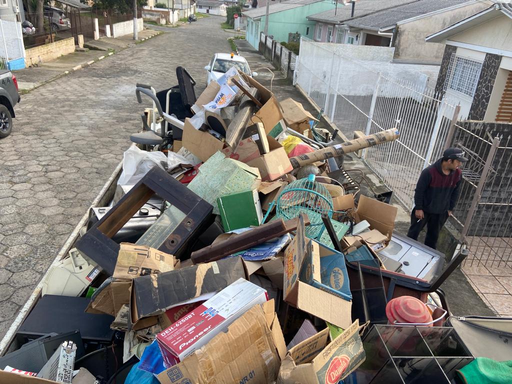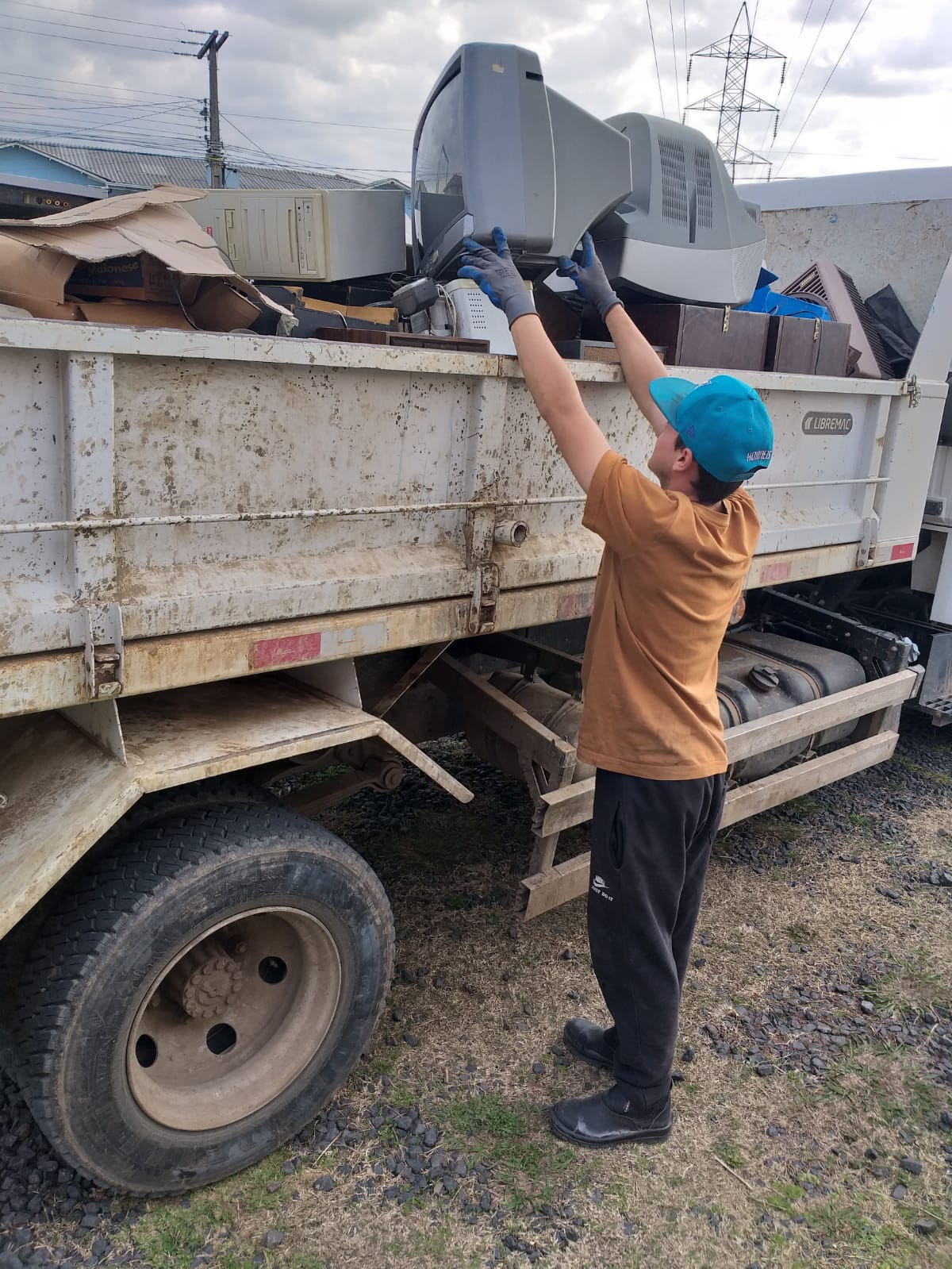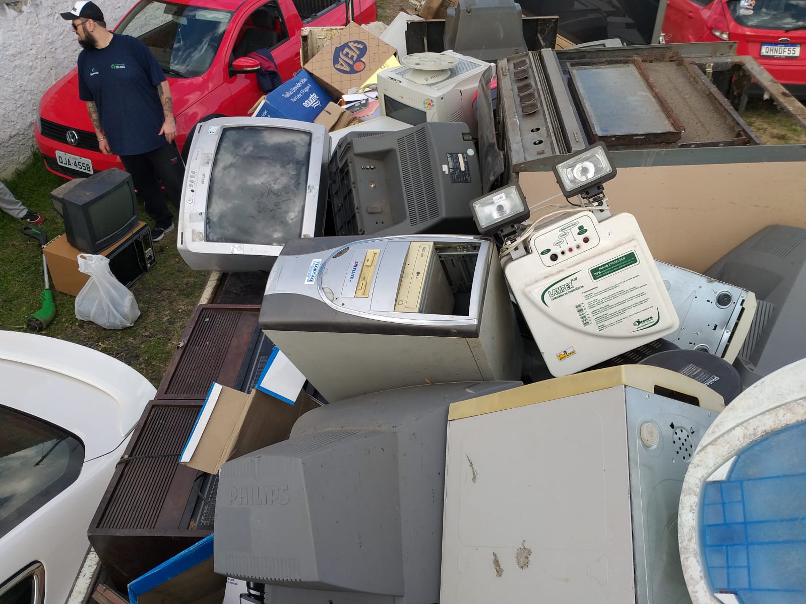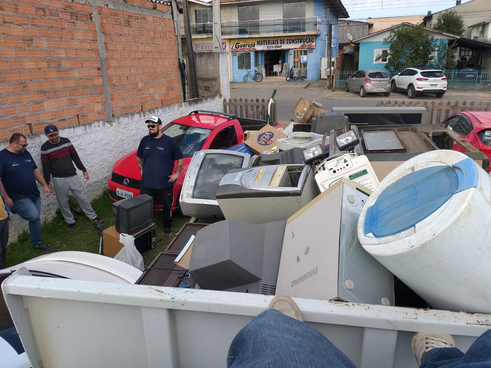 Mutirão do lixo eletrônico, no bairro Guarujá, coleta 4,5 toneladas de materiais