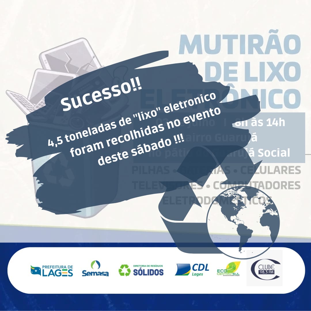 O Mutirão de Coleta do Lixo Eletrônico é realizado pela Prefeitura de Lages, por meio da Secretaria de Águas e Saneamento (Diretoria de Resíduos Sólidos) em parceria com a Câmara de Dirigentes Lojistas (CDL) e a empresa Eco Centro Sul. A rádio Clube de Lages também é parceira na ação.