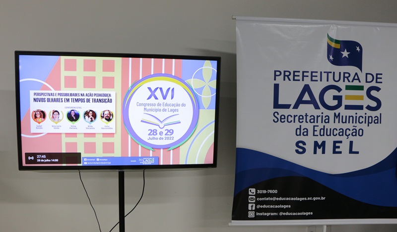 As atividades do XVI Congresso de Educação do Município de Lages iniciaram na tarde desta quinta-feira (28 de julho), com a abertura oficial do evento que contou com a presença do prefeito do município de Lages, Antonio Ceron, da secretária municipal da Educação, professora Ivana Michaltchuk e demais autoridades. As transmissões das conferências acontecem diretamente do auditório do Orion Parque Tecnológico e os inscritos acompanham toda a programação do evento pelo canal da Secretaria Municipal da Educação no Youtube.