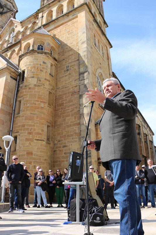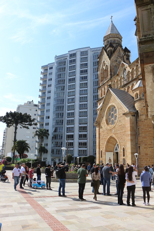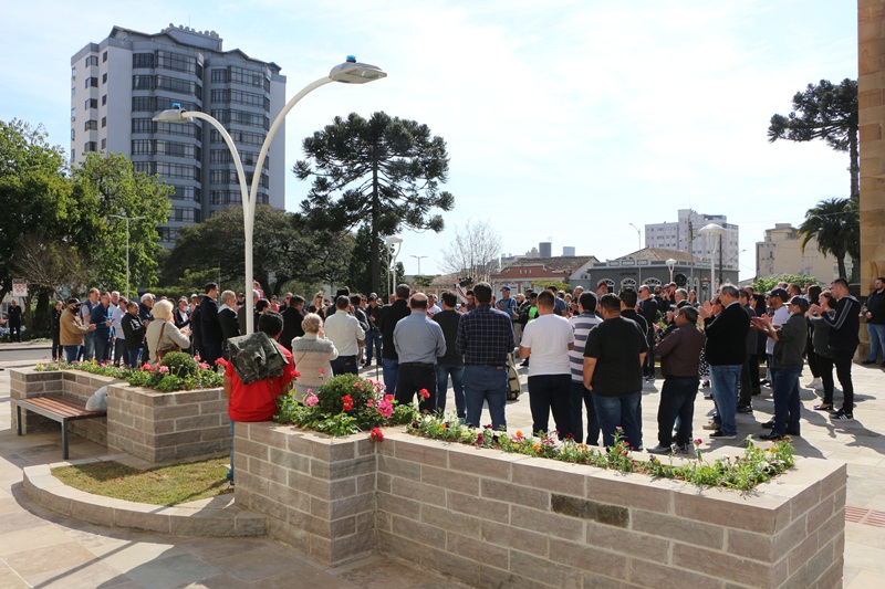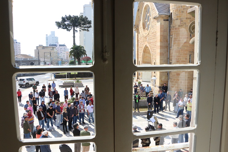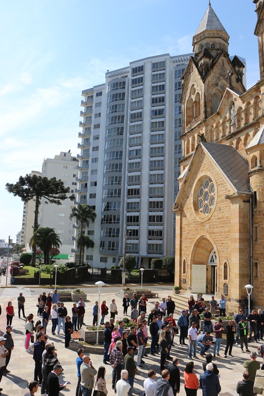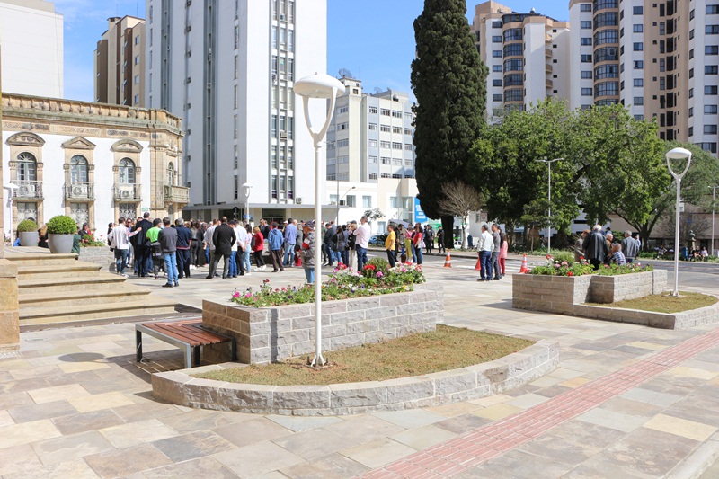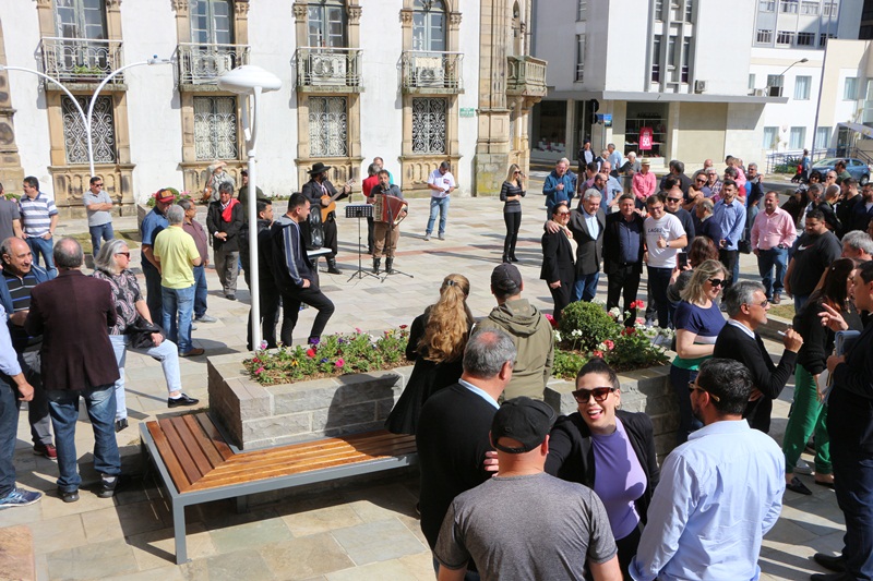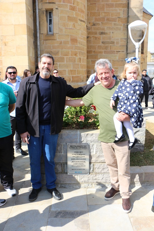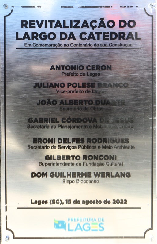 Antes do descerramento da placa de inauguração, houve o pronunciamento do bispo, falando sobre este dia especial da Assunção de Nossa Senhora, consagrado à padroeira em virtude da devoção que o fundador de Lages, Antonio Correia Pinto de Macedo, tinha pela imagem de Nossa Senhora dos Prazeres. Imagem que chegou a Lages trazida pelos primeiros colonizadores portugueses. O Hino de Nossa Senhora dos Prazeres foi cantado pelo músico Paulinho Guazelli. “Agradeço a Deus por este lindo dia. É uma emoção participar deste momento de religiosidade, e da inauguração dessa obra de revitalização. É uma obra importante, pois valoriza a nossa Catedral, marco de religiosidade, e de referência turística de Lages”, destacou o prefeito Antonio Ceron, durante pronunciamento público. “Neste ano, completa-se 100 anos da inauguração da Catedral de Lages, cuja construção iniciou em 1912 e a conclusão em 1º de janeiro de 1922. Esta obra de reforma do Largo da Catedral, portanto, chega em boa hora”, comenta Dom Guilherme Werlang.