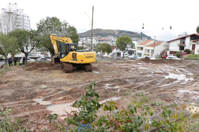Avançam as obras da nova quadra de esportes da praça Waldo Costa, em Lages