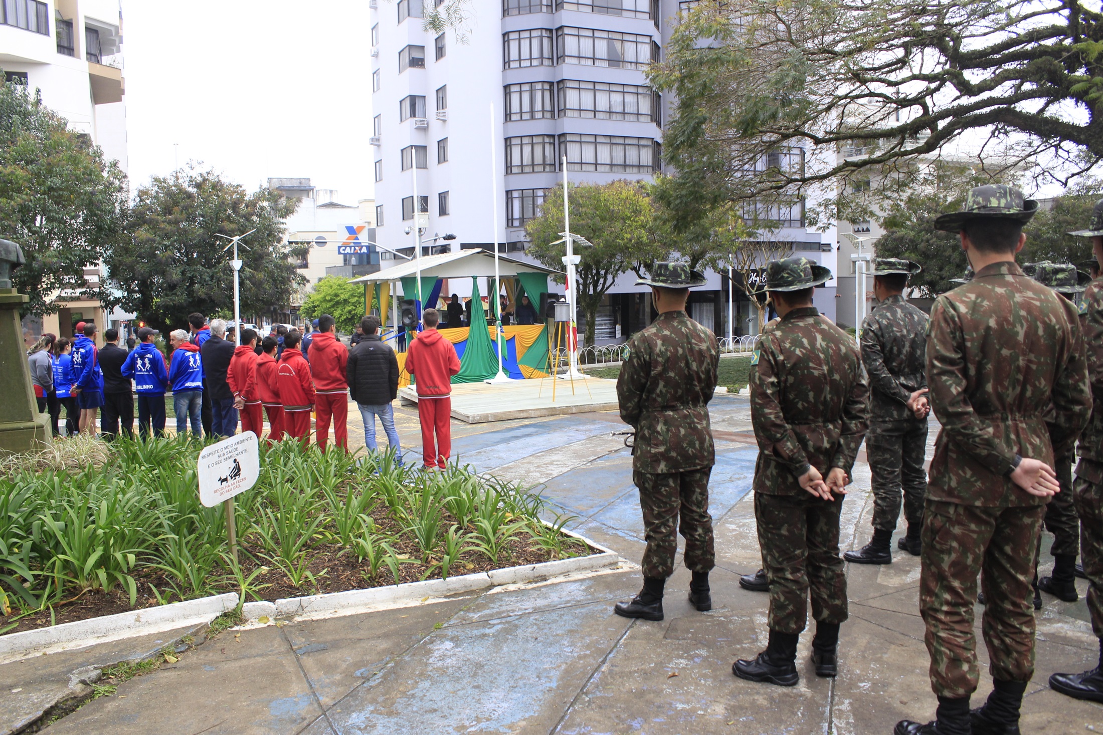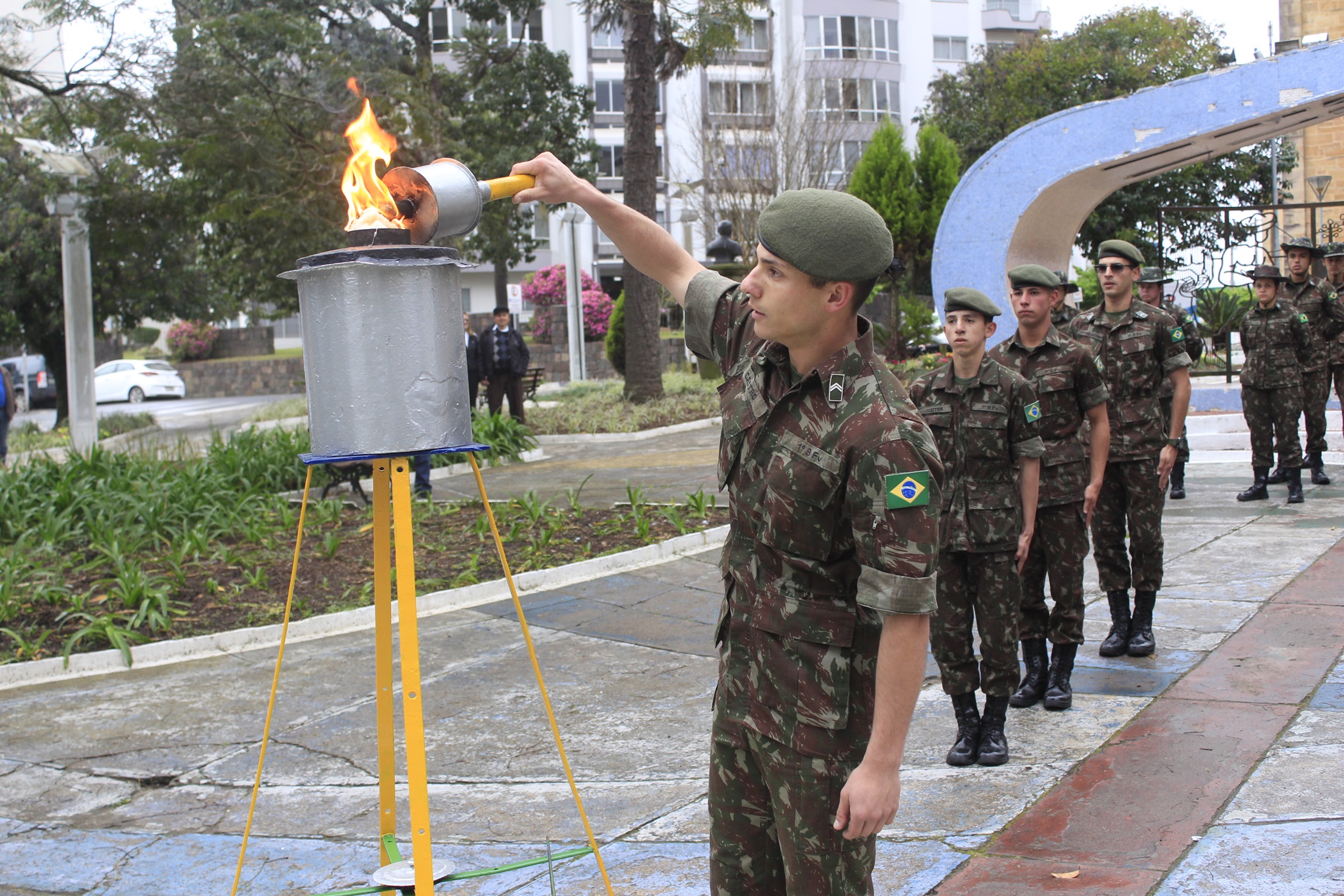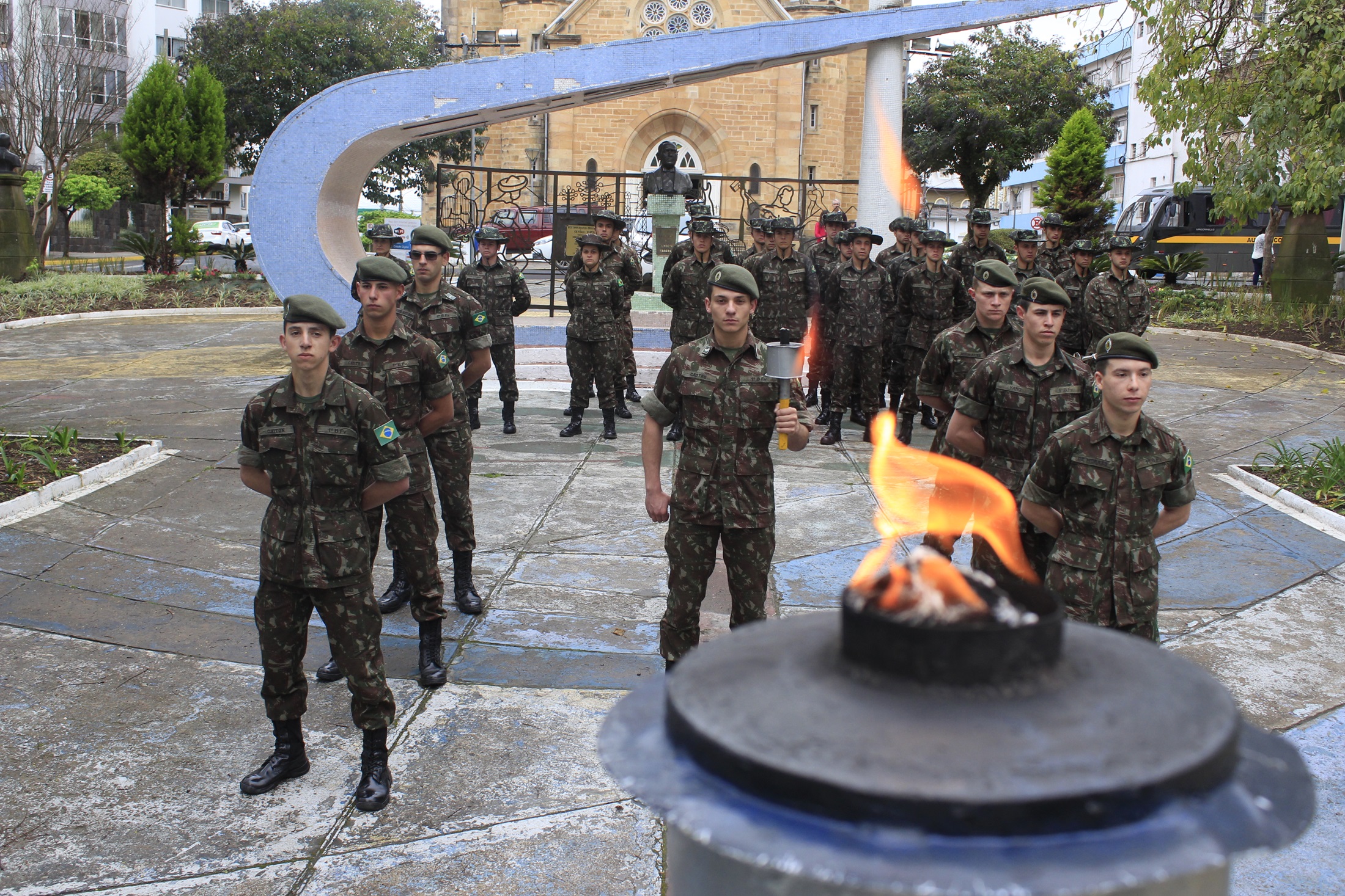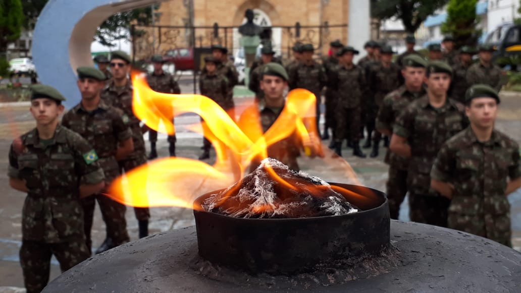 Este ano as homenagens do fogo simbólico e guarda das bandeiras estão sendo realizadas na praça João Ribeiro