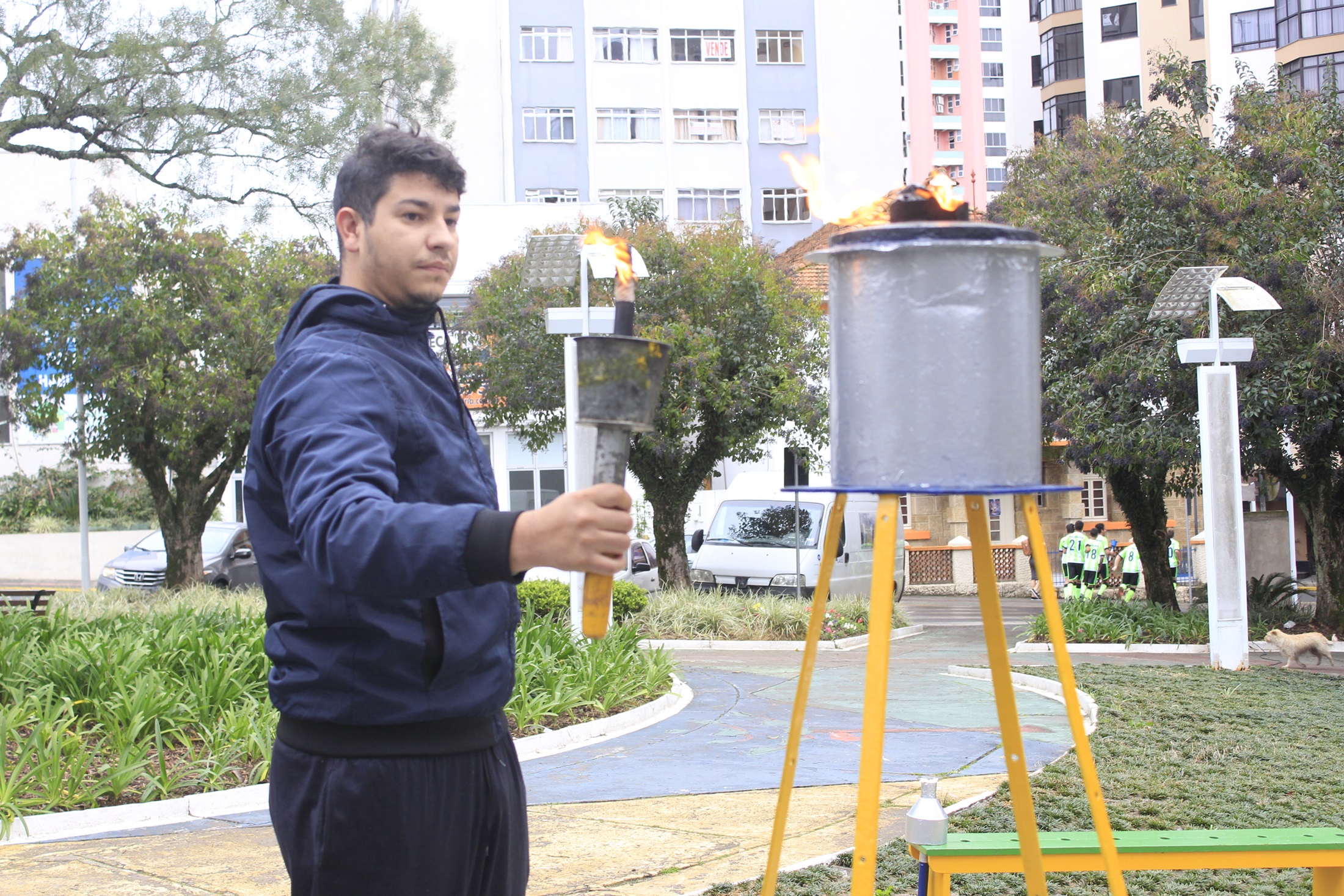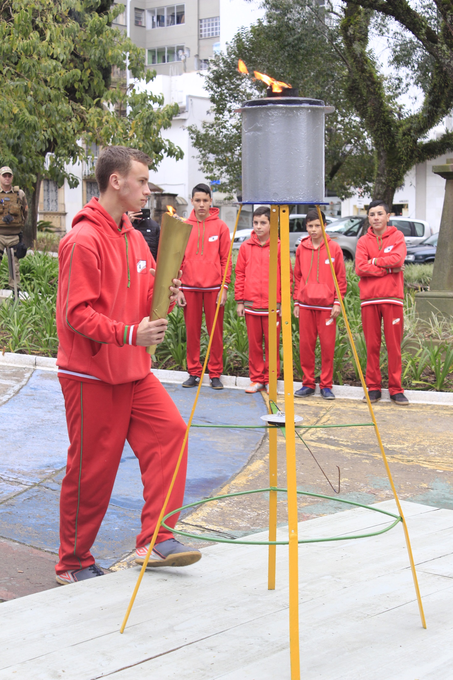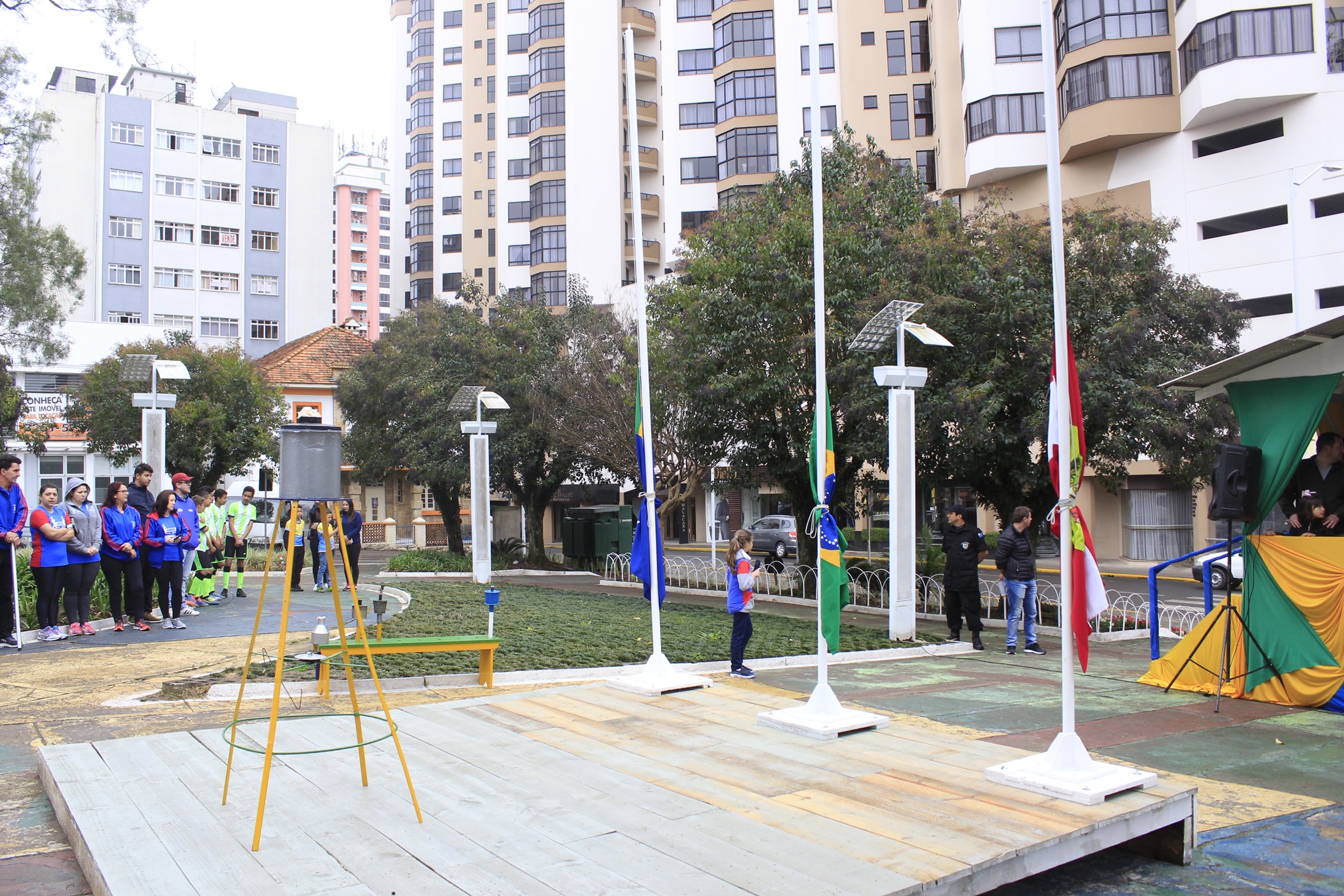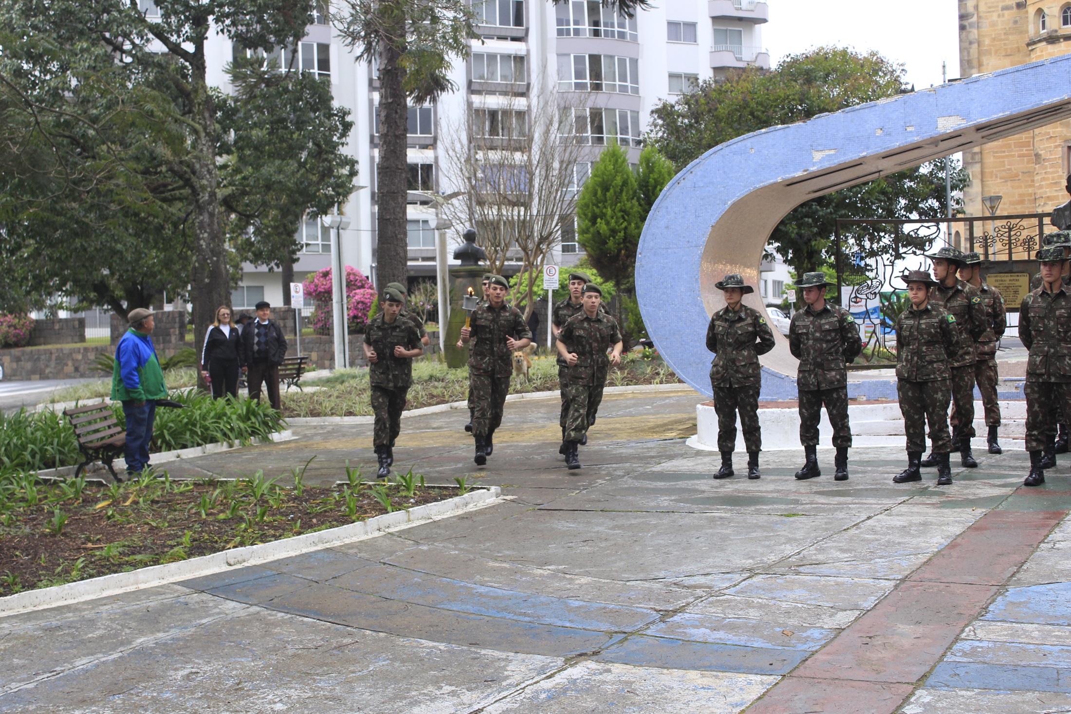 Este ano as homenagens do fogo simbólico e guarda das bandeiras estão sendo realizadas na praça João Ribeiro