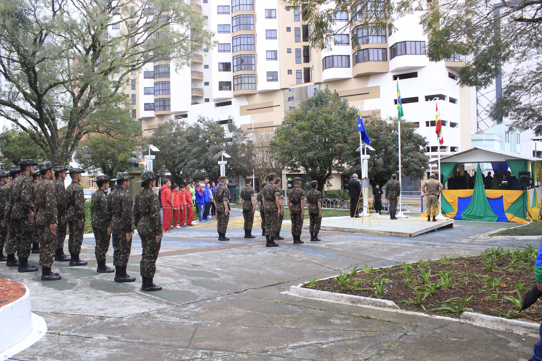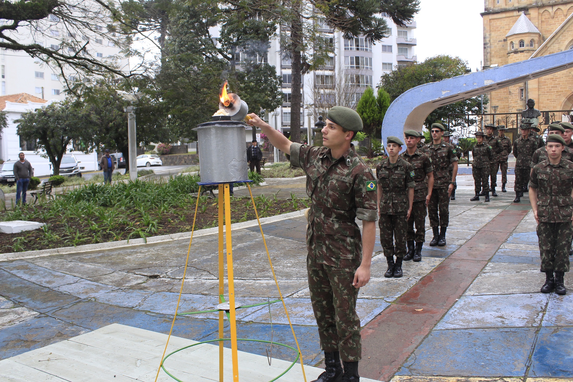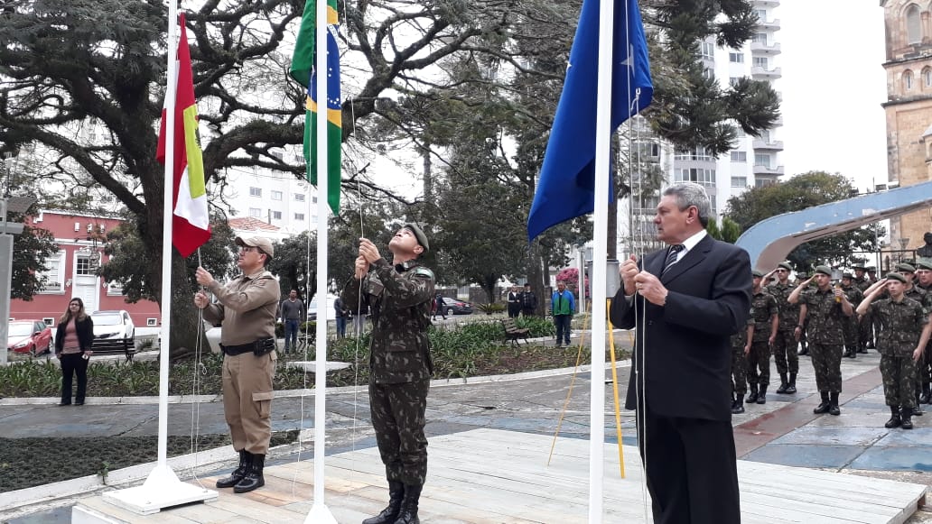 O prefeito Antonio Ceron e demais autoridades civis e militares realizaram a abertura oficial da Semana da Pátria 2019. O ato realizado na praça João Ribeiro (da Catedral) teve o acendimento do fogo simbólico, realizado pelo pelotão do 1º Batalhão Ferroviário, e o hasteamento das bandeiras: do Brasil, Estado de Santa Catarina e município de Lages.
