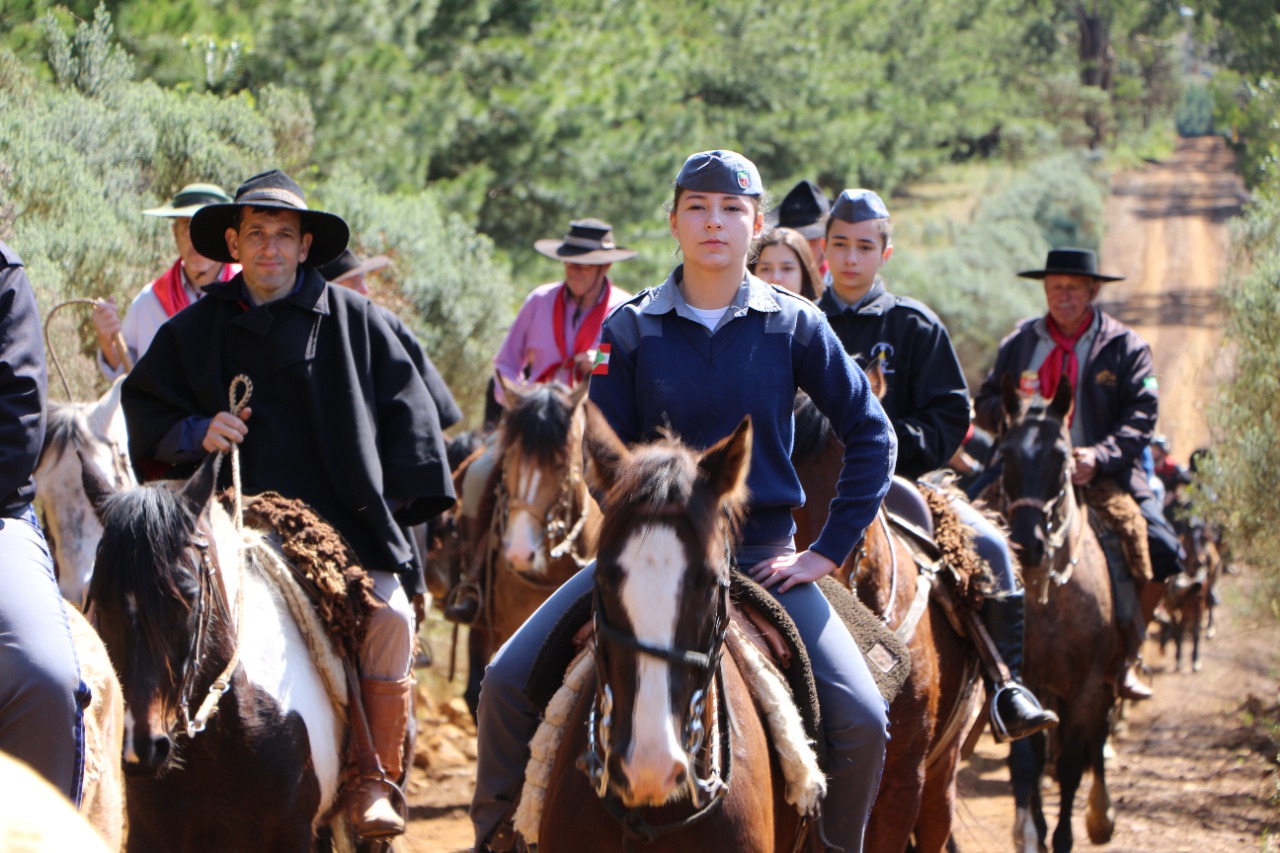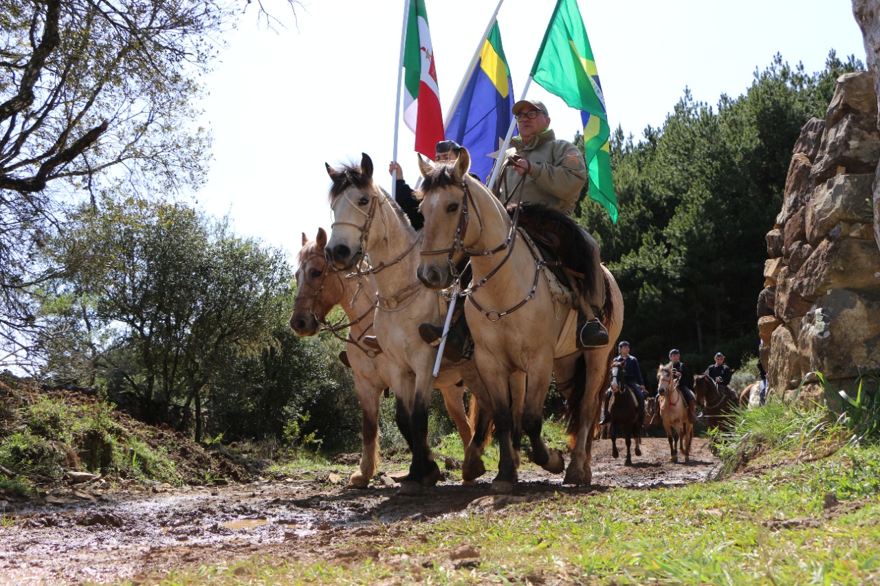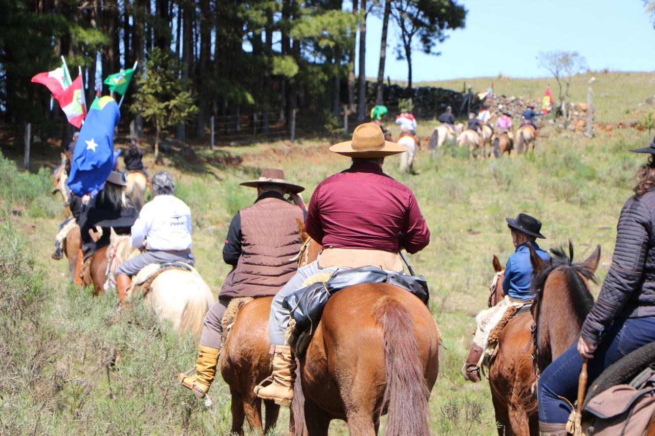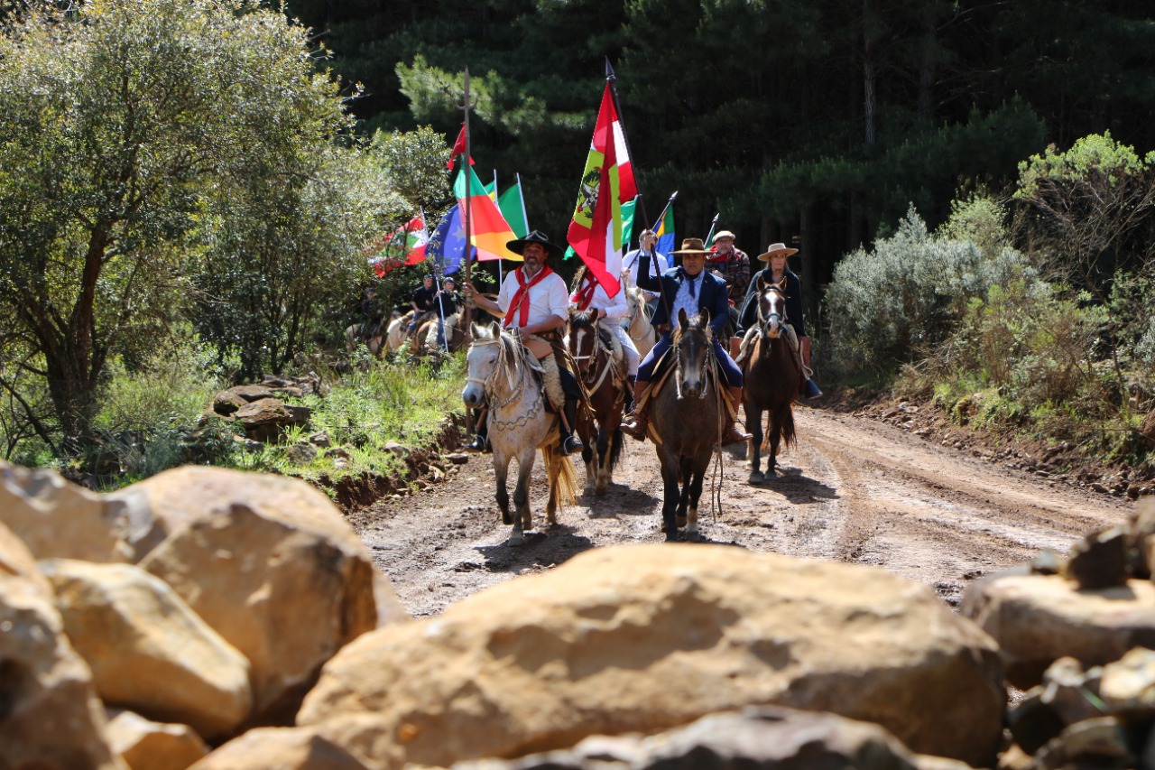 Cerca de 50 cavaleiros e amazonas percorreram roteiro de fazendas históricas da Coxilha Rica, entre elas a Tijolinho, São João, Andrade e São Sebastião. A cavalgada partiu às 11 horas, da localidade de Morrinhos, e contou com a participação de proprietários rurais, estudantes e professores do Colégio Policial Militar Feliciano Nunes Pires, tradicionalistas e autoridades das áreas de Turismo, Cultura, Desenvolvimento Econômico e Agricultura, com destaque para o secretário Álvaro Mondadori Júnior (Joinha), o diretor Henrique Beling, o superintendente da FCL Gilberto Ronconi, e o presidente da Santur, Henrique Maciel.