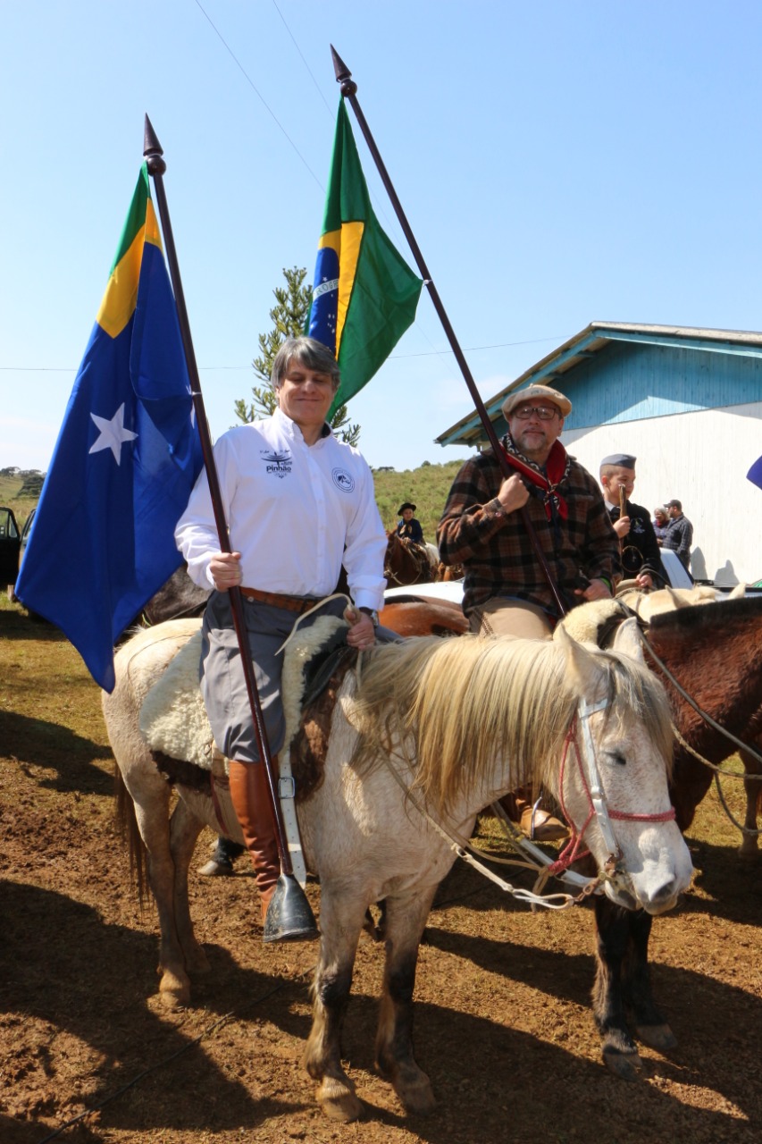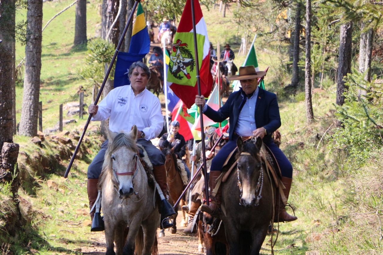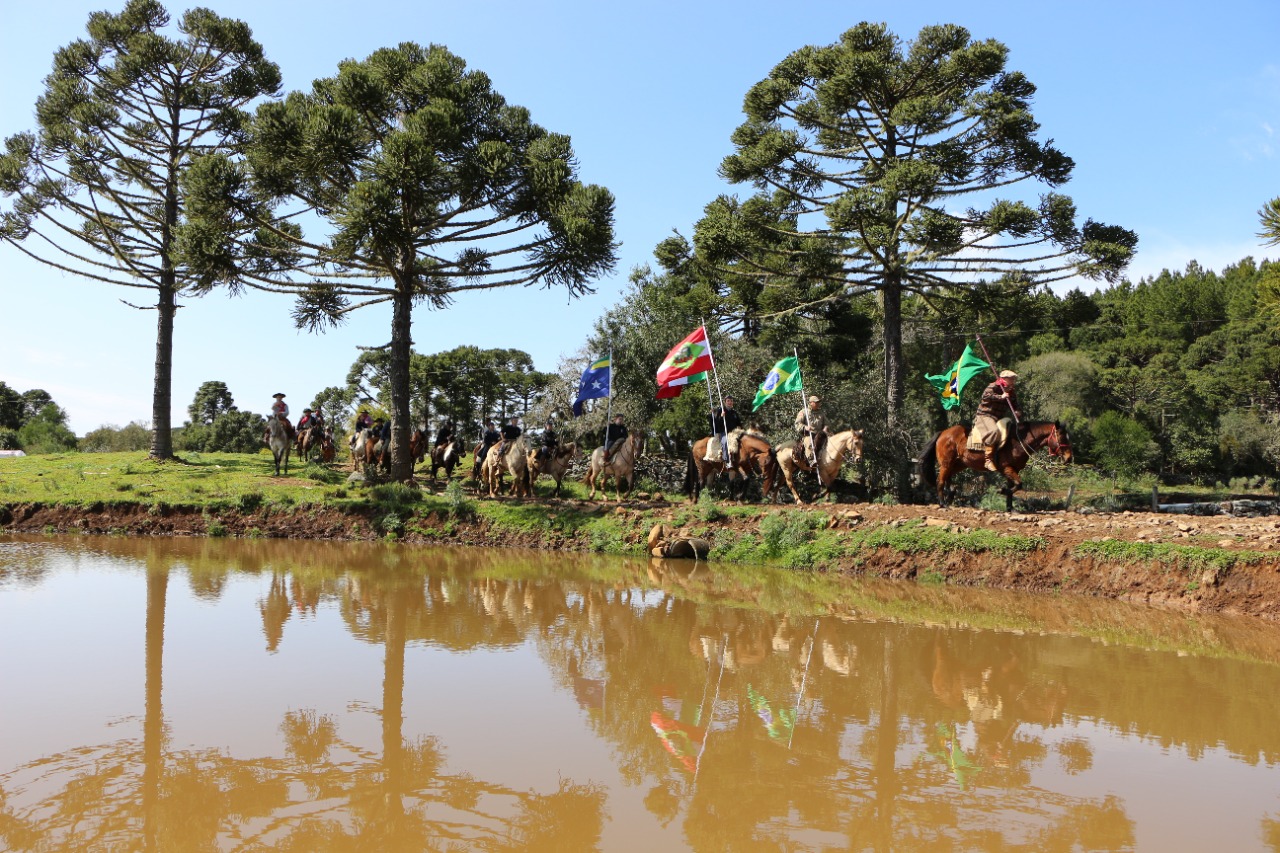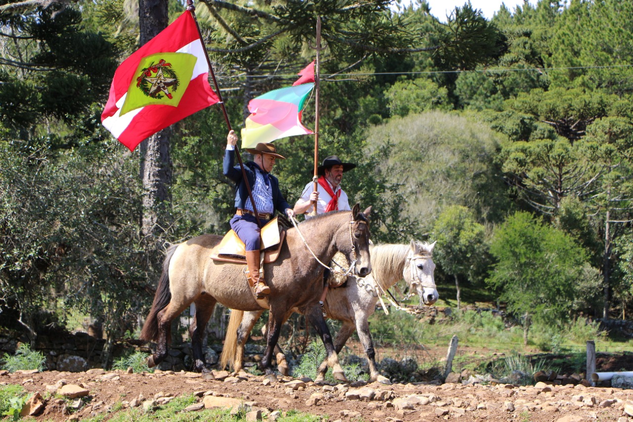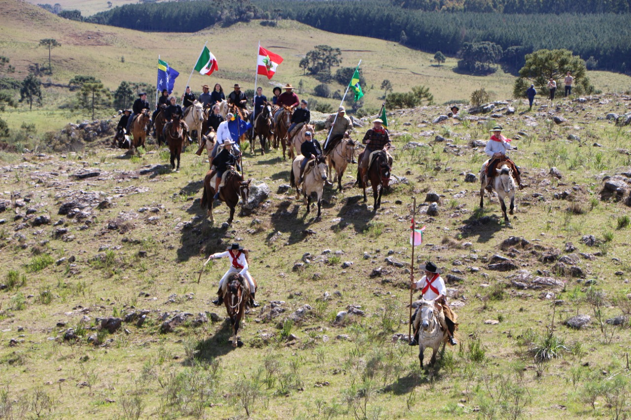 Cerca de 50 cavaleiros e amazonas percorreram roteiro de fazendas históricas da Coxilha Rica, entre elas a Tijolinho, São João, Andrade e São Sebastião. A cavalgada partiu às 11 horas, da localidade de Morrinhos, e contou com a participação de proprietários rurais, estudantes e professores do Colégio Policial Militar Feliciano Nunes Pires, tradicionalistas e autoridades das áreas de Turismo, Cultura, Desenvolvimento Econômico e Agricultura, com destaque para o secretário Álvaro Mondadori Júnior (Joinha), o diretor Henrique Beling, o superintendente da FCL Gilberto Ronconi, e o presidente da Santur, Henrique Maciel.