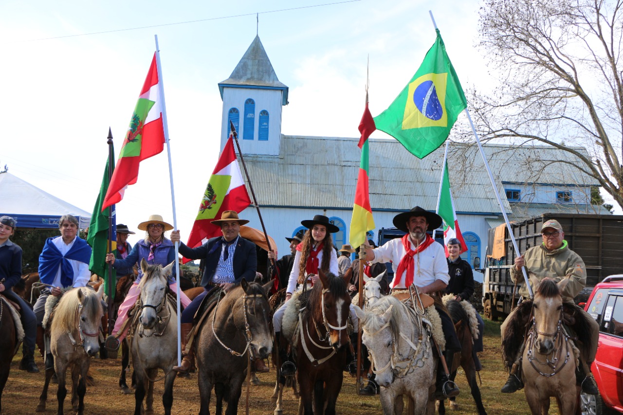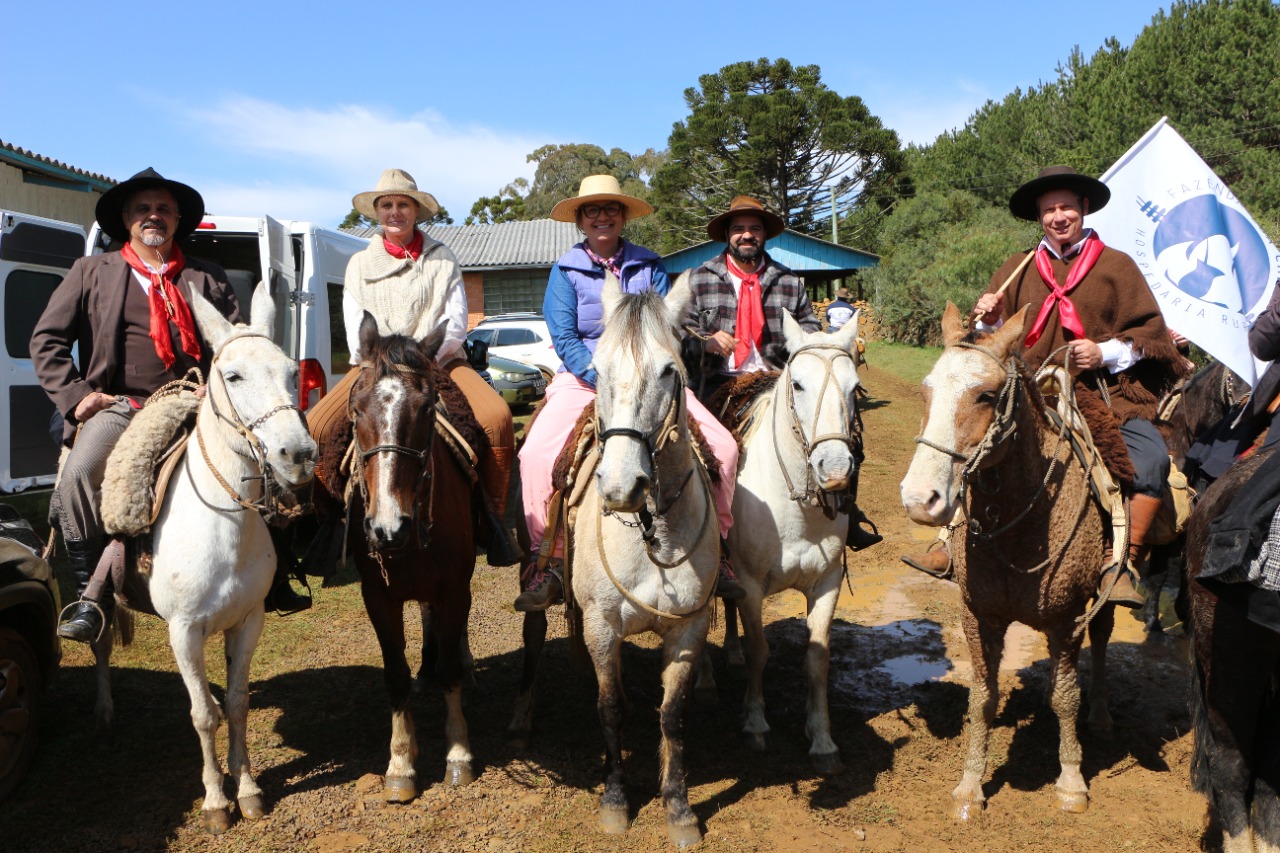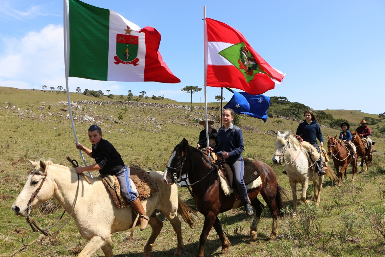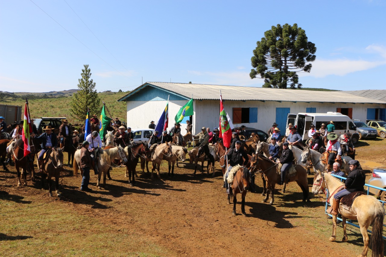 Cerca de 50 cavaleiros e amazonas percorreram roteiro de fazendas históricas da Coxilha Rica, entre elas a Tijolinho, São João, Andrade e São Sebastião. A cavalgada partiu às 11 horas, da localidade de Morrinhos, e contou com a participação de proprietários rurais, estudantes e professores do Colégio Policial Militar Feliciano Nunes Pires, tradicionalistas e autoridades das áreas de Turismo, Cultura, Desenvolvimento Econômico e Agricultura, com destaque para o secretário Álvaro Mondadori Júnior (Joinha), o diretor Henrique Beling, o superintendente da FCL Gilberto Ronconi, e o presidente da Santur, Henrique Maciel.
