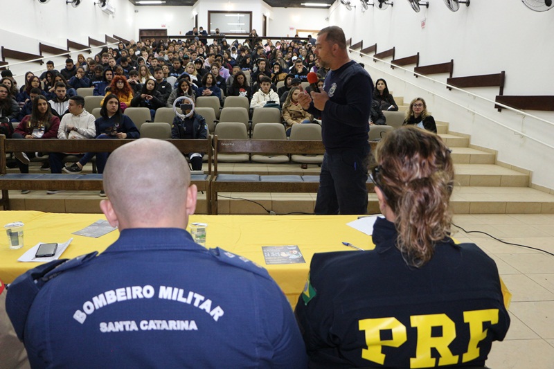 O evento aconteceu no auditório do Colégio Industrial de Lages e contou com a presença do vice-prefeito Juliano Polese, demais autoridades ligadas ao trânsito, convidados e alunos do colégio. Um dos ministrantes